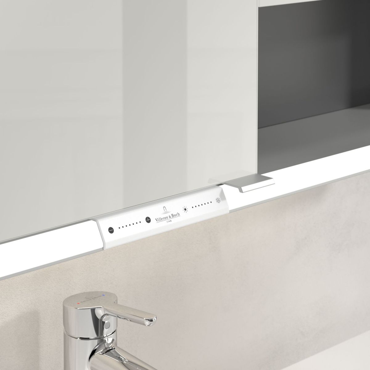 Eine raffinierte und attraktive Lösung für das minimalistische Badezimmer – der Einbau-Spiegelschrank My View+ von Villeroy & Boch setzt mit intelligenten Funktionen und stilvollen Farbakzenten neue Maßstäbe. Der Schrank mit geschlossenen Fächern und offenen Kammern fügt sich perfekt in die Wand ein und sorgt für einen besonders eleganten, minimalistischen Effekt. Die farbige Rückwand setzt individuelle Farbakzente und Designelemente im Badezimmer.