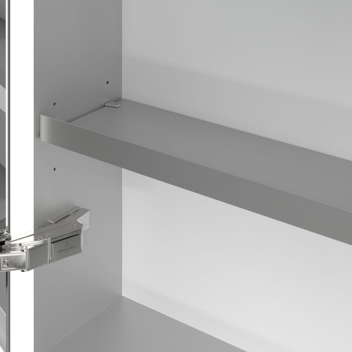 Eine raffinierte und attraktive Lösung für das minimalistische Badezimmer – der Einbau-Spiegelschrank My View+ von Villeroy & Boch setzt mit intelligenten Funktionen und stilvollen Farbakzenten neue Maßstäbe. Der Schrank mit geschlossenen Fächern und offenen Kammern fügt sich perfekt in die Wand ein und sorgt für einen besonders eleganten, minimalistischen Effekt. Die farbige Rückwand setzt individuelle Farbakzente und Designelemente im Badezimmer.