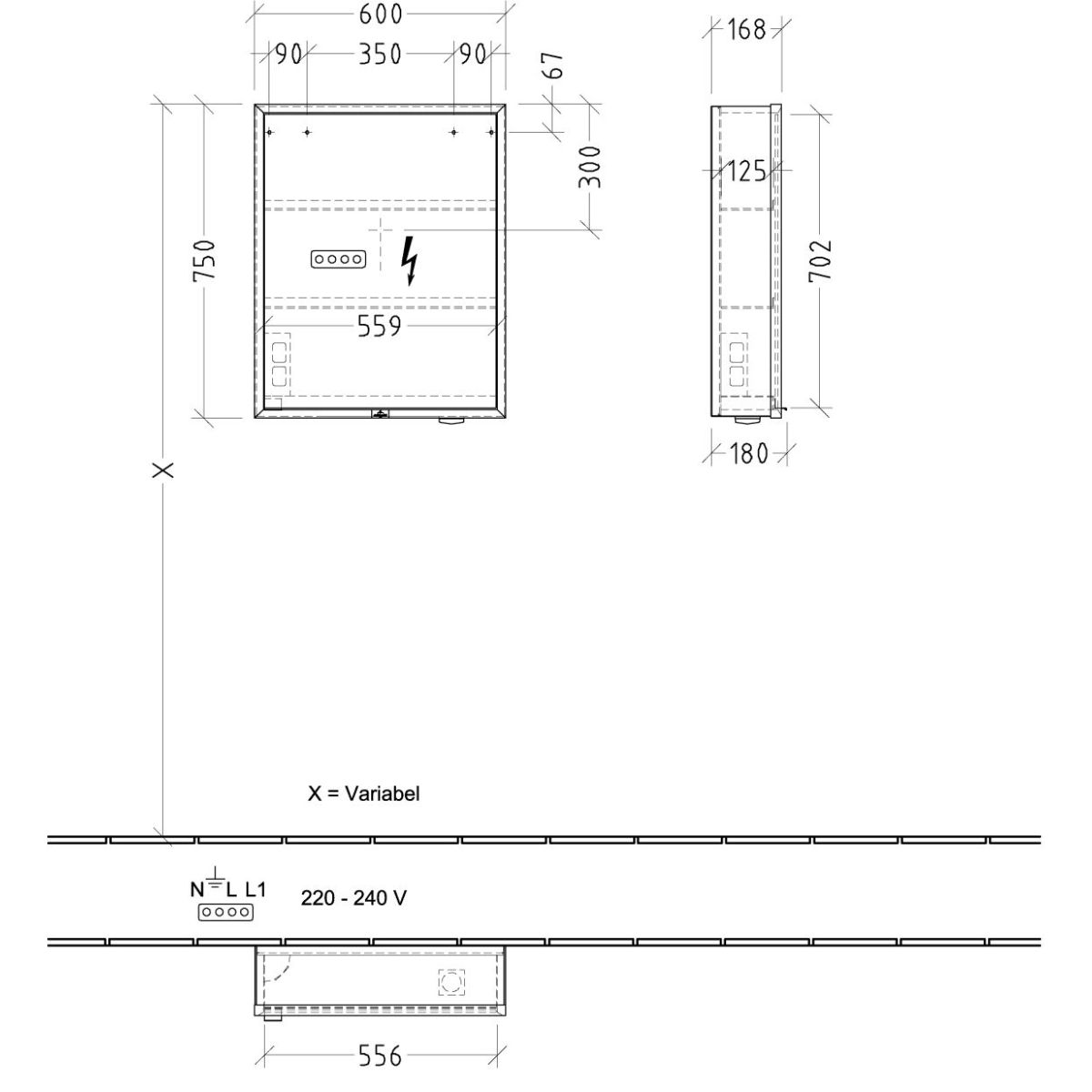 - Ausstattung: 1 x Tür, 1 x Sensorschalter außen, 2 x Steckdose innen, 4 x Aluminiumregale, 1 x offenes Fach rechts unten, 1 x Behälter, 1 x Vergrößerungsspiegel, 1 x Magnetleiste- Material des Korpus: Aluminium