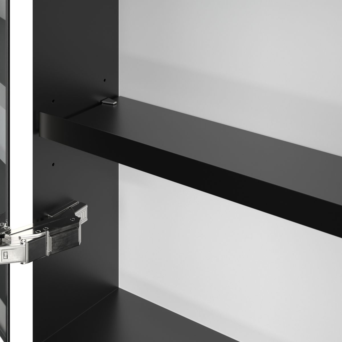 - Ausstattung: 1 x Tür, 1 x Sensorschalter außen, 2 x Steckdose innen, 2 x Ablagen aus Aluminium, 1 x Behälter, 1 x Vergrößerungsspiegel, 1 x Magnetleiste