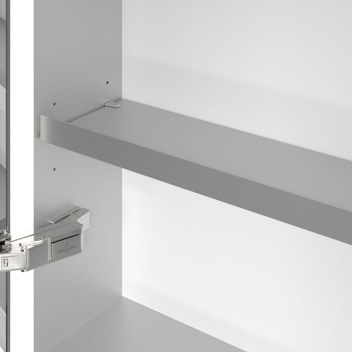 Eine raffinierte und attraktive Lösung für das minimalistische Badezimmer – der Einbau-Spiegelschrank My View+ von Villeroy & Boch setzt mit intelligenten Funktionen und stilvollen Farbakzenten neue Maßstäbe. Der Schrank mit geschlossenen Fächern und offenen Kammern fügt sich perfekt in die Wand ein und sorgt für einen besonders eleganten, minimalistischen Effekt. Die farbige Rückwand setzt individuelle Farbakzente und Designelemente im Badezimmer.