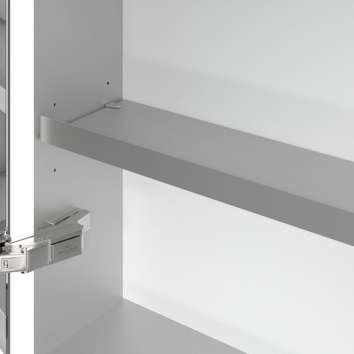 Eine raffinierte und attraktive Lösung für das minimalistische Badezimmer – der Einbau-Spiegelschrank My View+ von Villeroy & Boch setzt mit intelligenten Funktionen und stilvollen Farbakzenten neue Maßstäbe. Der Schrank mit geschlossenen Fächern und offenen Kammern fügt sich perfekt in die Wand ein und sorgt für einen besonders eleganten, minimalistischen Effekt. Die farbige Rückwand setzt individuelle Farbakzente und Designelemente im Badezimmer.