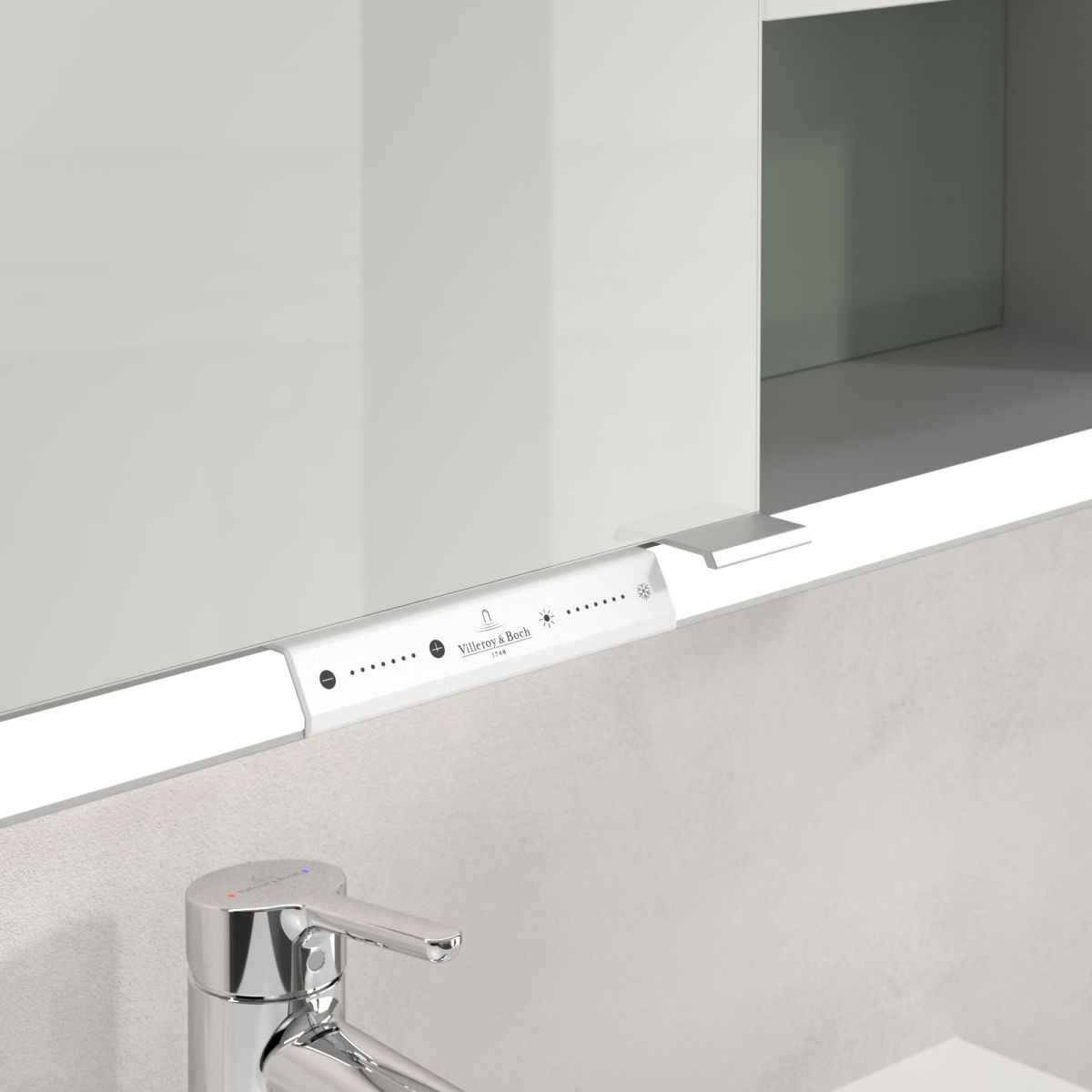Eine raffinierte und attraktive Lösung für das minimalistische Badezimmer – der Einbau-Spiegelschrank My View+ von Villeroy & Boch setzt mit intelligenten Funktionen und stilvollen Farbakzenten neue Maßstäbe. Der Schrank mit geschlossenen Fächern und offenen Kammern fügt sich perfekt in die Wand ein und sorgt für einen besonders eleganten, minimalistischen Effekt. Die farbige Rückwand setzt individuelle Farbakzente und Designelemente im Badezimmer.