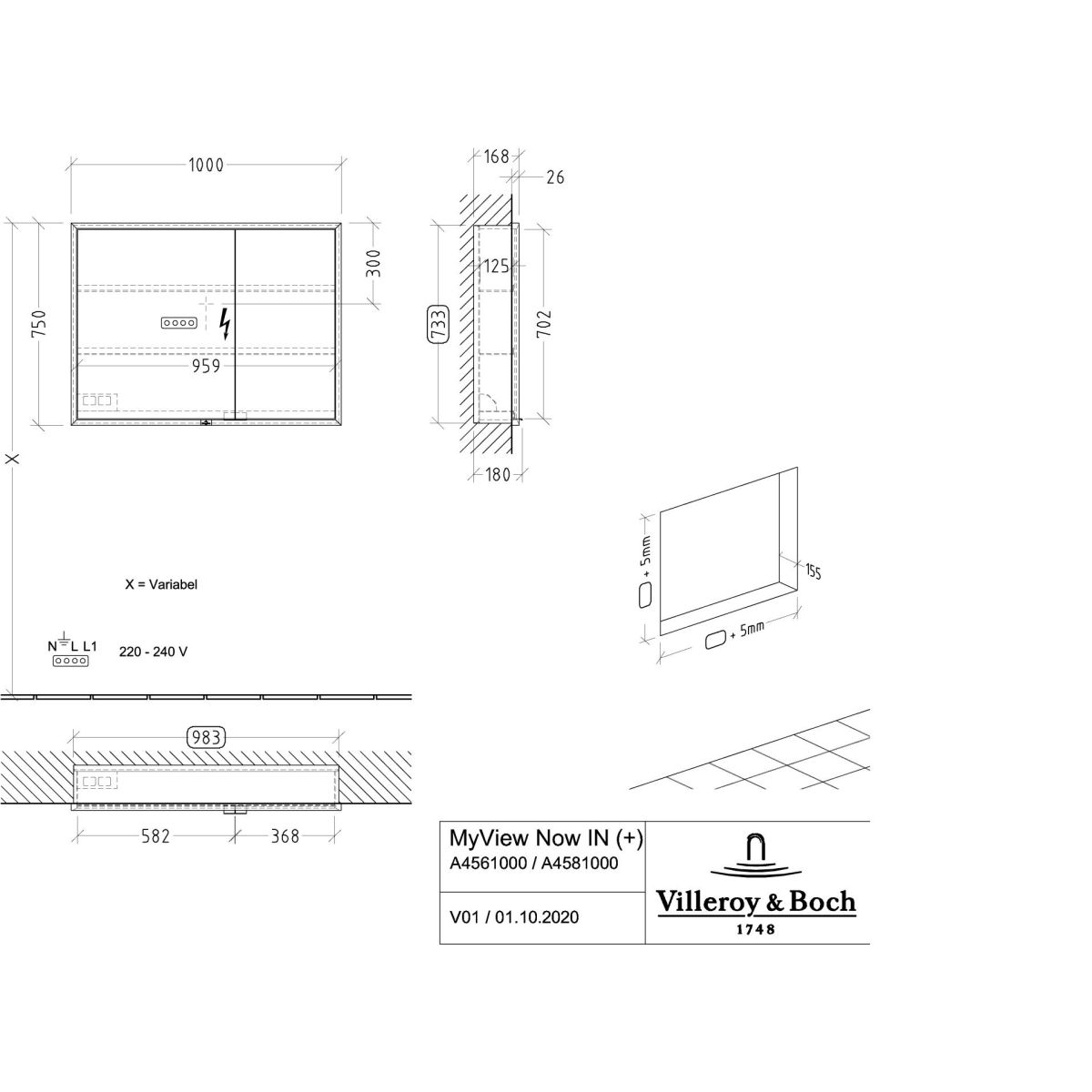 Villeroy & Boch My View+ Kabinett 100x16.8x75 cm Spiegelschrank graphit B48210VR