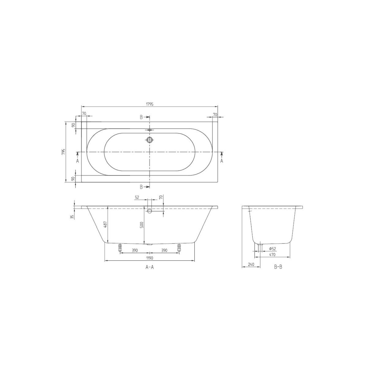 Villeroy & Boch O.Novo Rechteckige Badewanne 179.5x79.5 cm weiß UBA180CAS2V-01