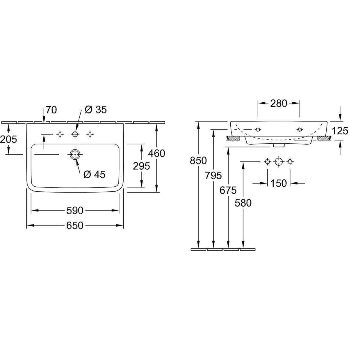 Villeroy & Boch O.Novo umywalka 65x46 cm częściowo wpuszczana prostokątna Weiss Alpin 4A41KGR1