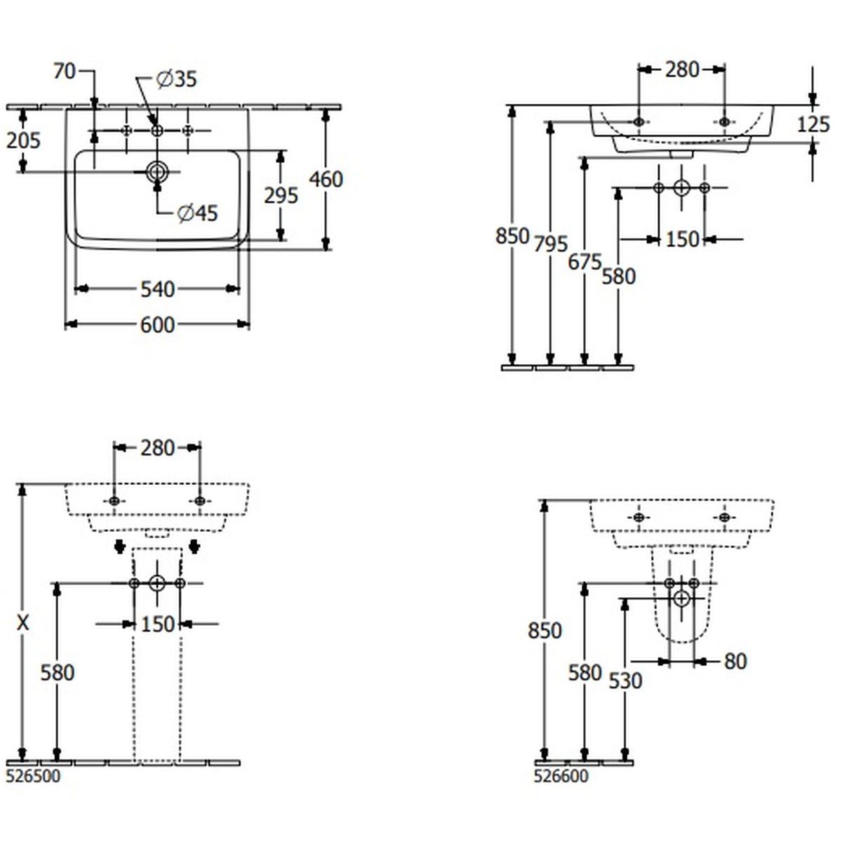Villeroy & Boch O.Novo umywalka 60x46 cm prostokątna ścienna biała 4A416G01