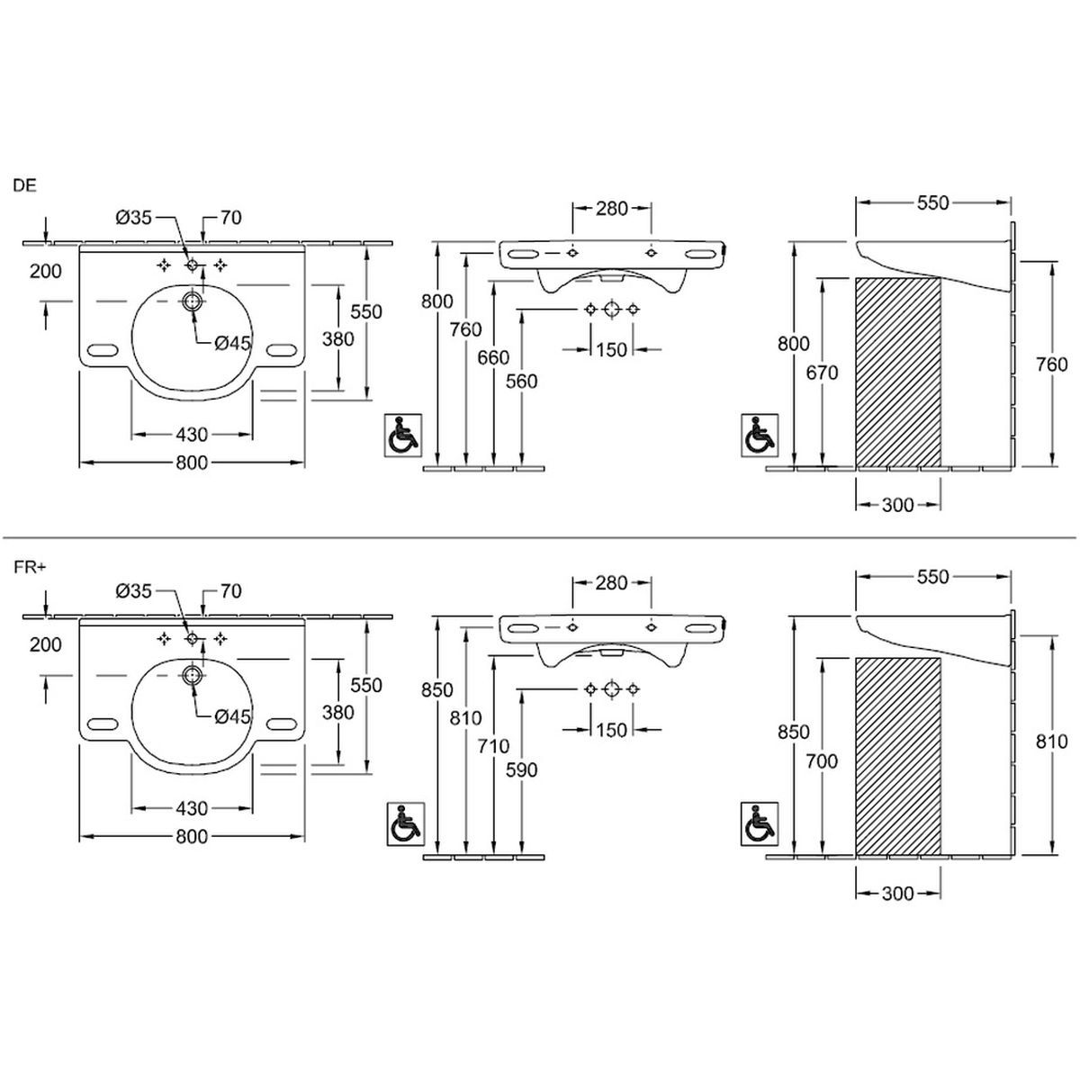Villeroy & Boch O.Novo Vita Waschbecken 80x55 cm Klassisch für Behinderte weiß 41208001