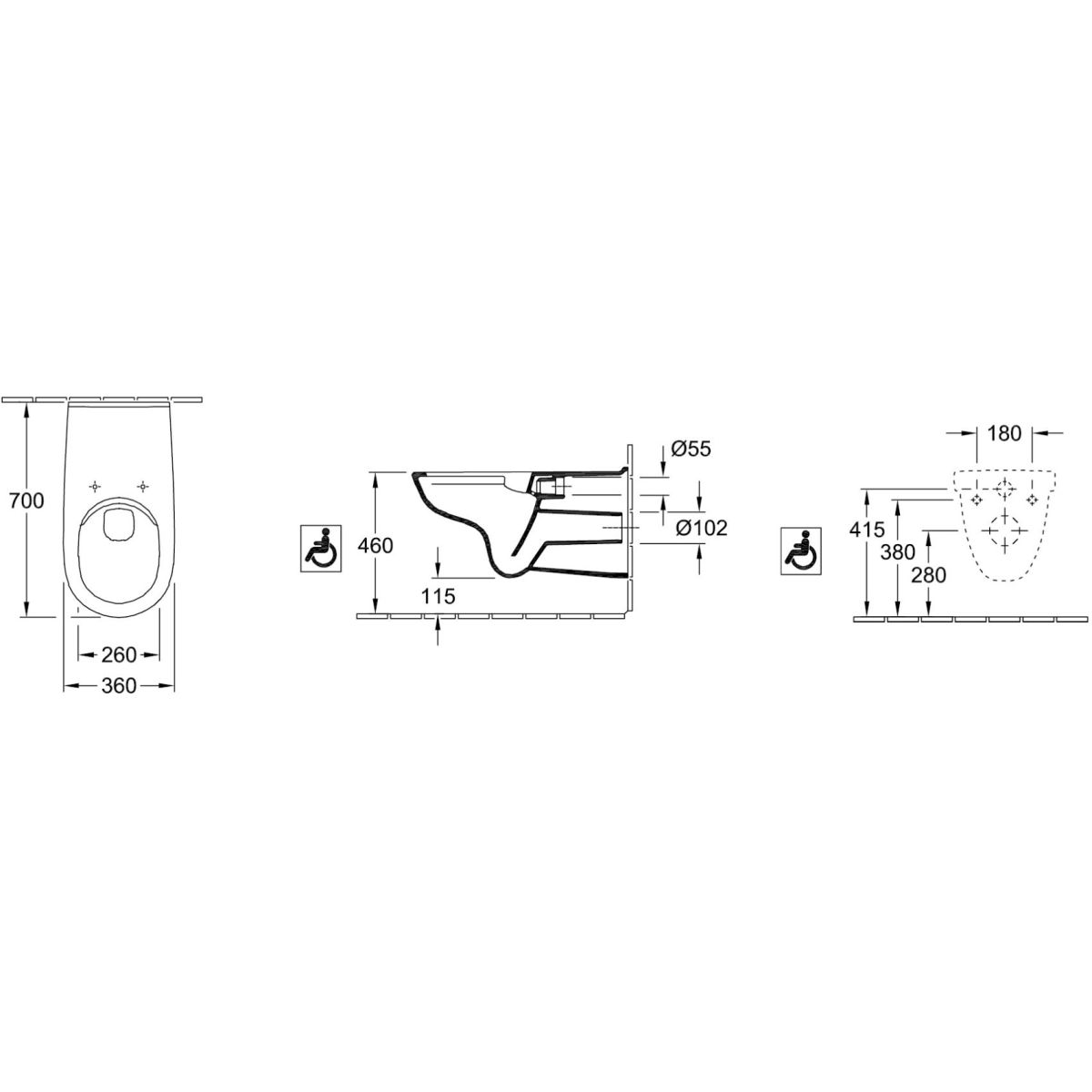 Villeroy & Boch O.Novo Vita WC-Becken hängend Spülrandlos für Behinderte weiß 4601R0R1