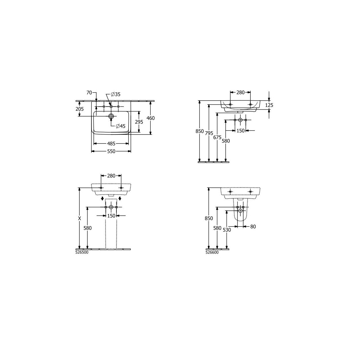 Villeroy & Boch O.Novo waschbecken 55x46 cm rechteckig klassisch weiß 4A4155R1