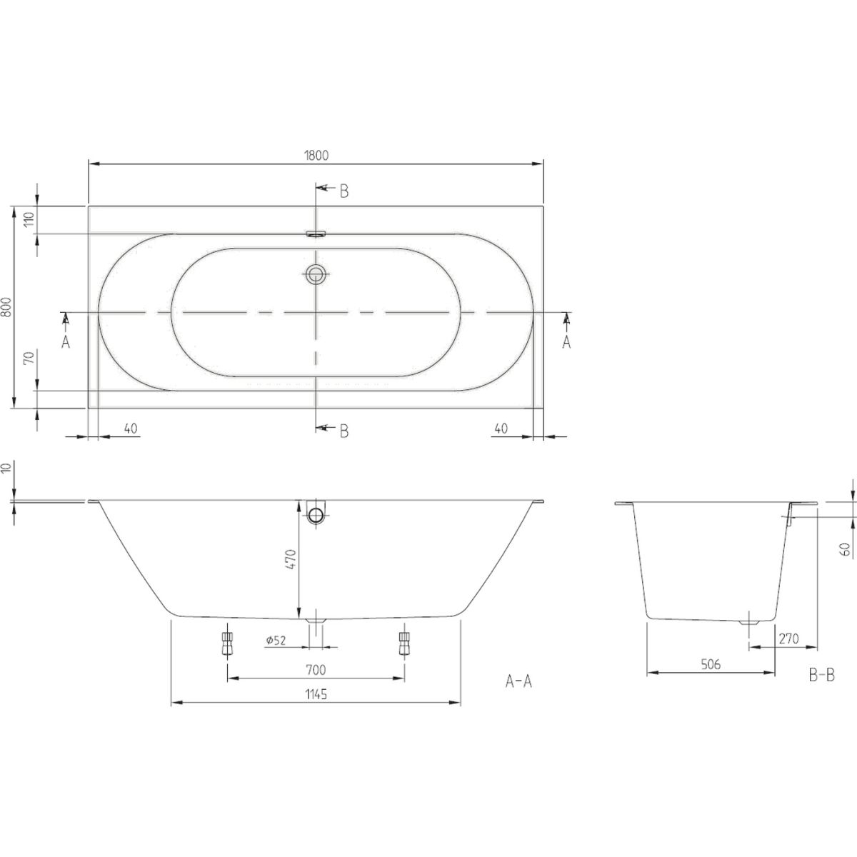 - Maße des Wannenbodens: 114,5 x 50,6 cm