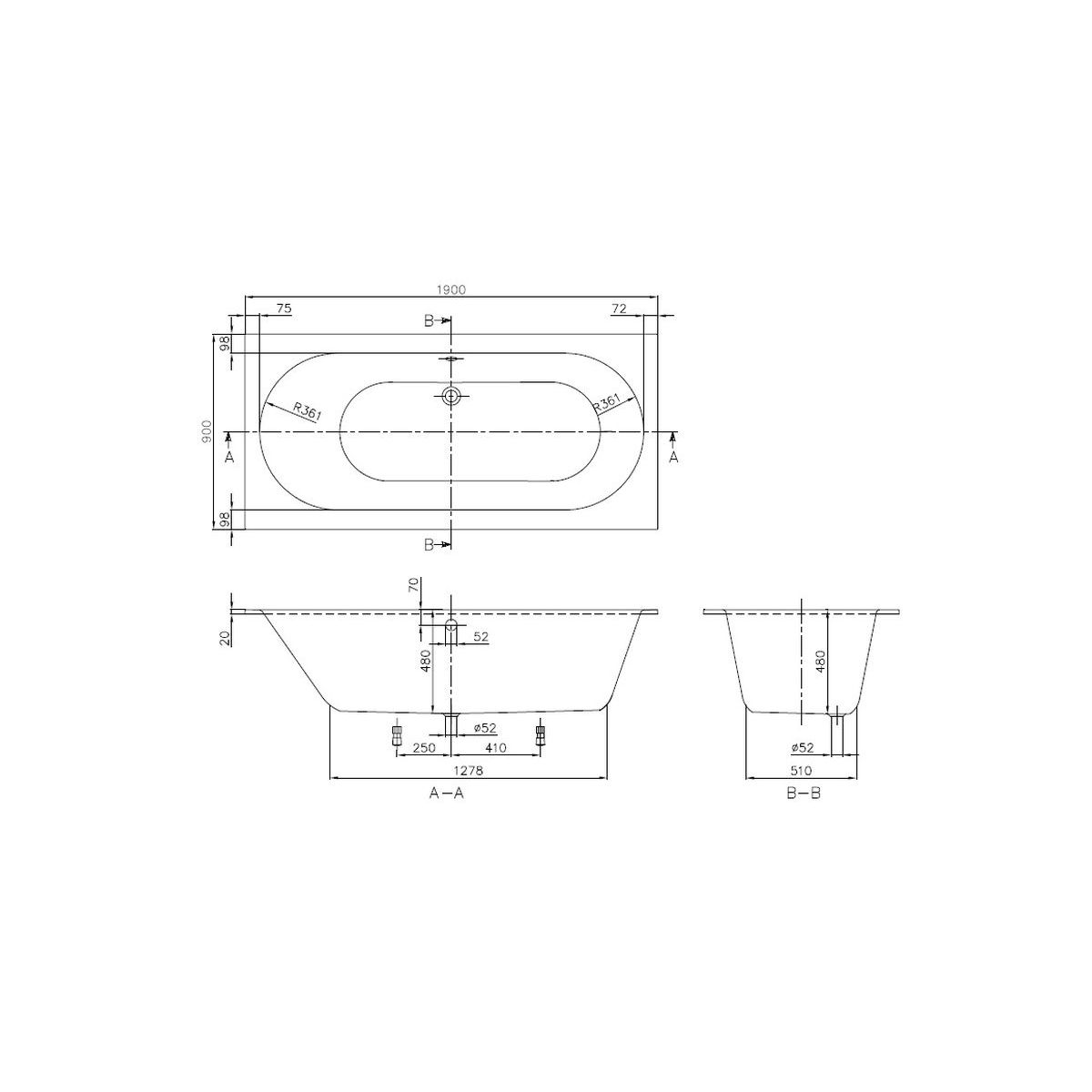 - Maße des Wannenbodens: 127,8 x 51 cm