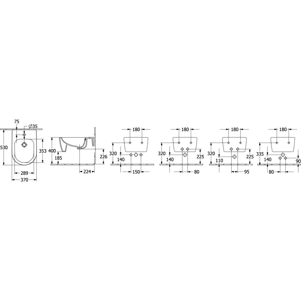- moderne, längliche Form der Überlauföffnung