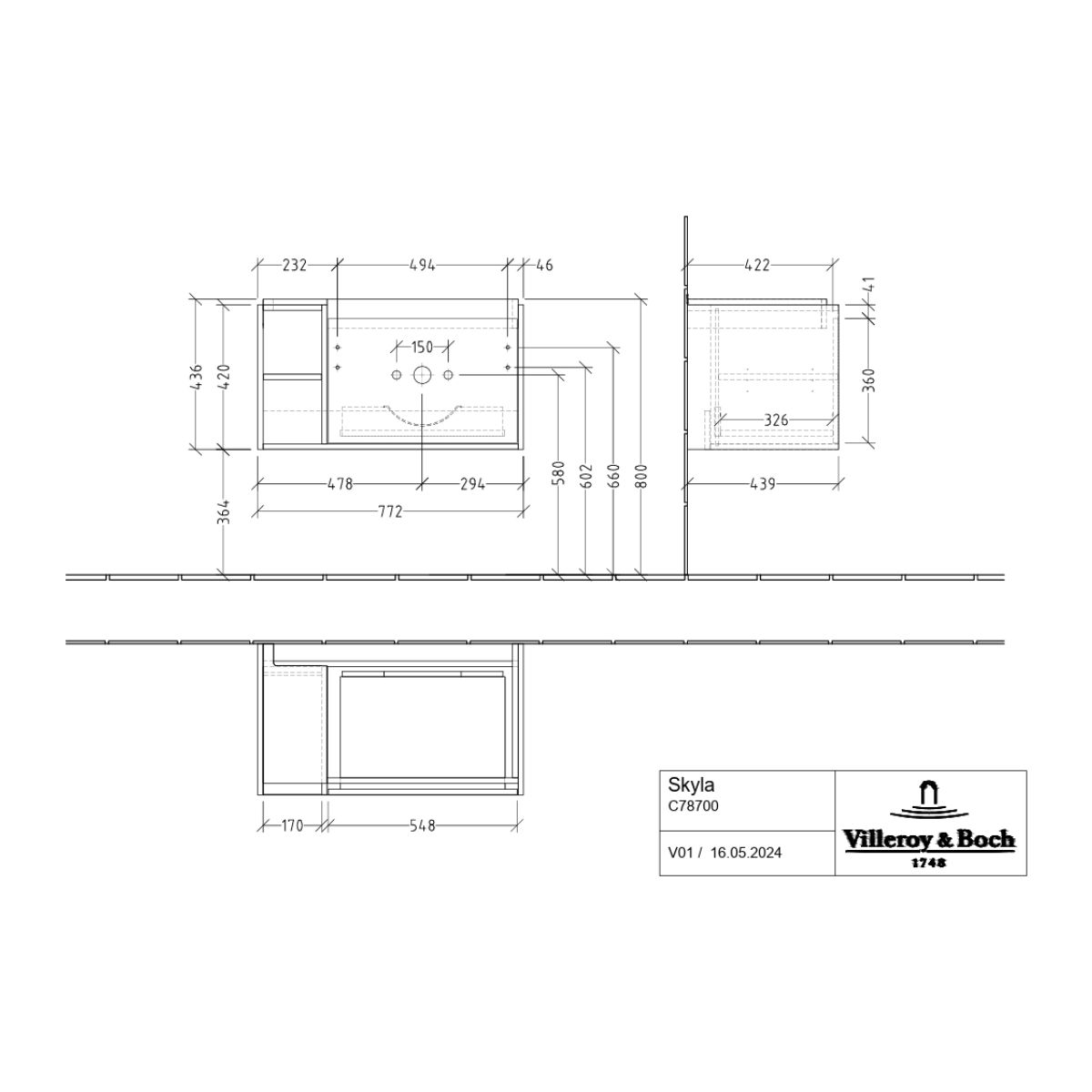 Villeroy & Boch Skyla Kabinett 77.2x43.9x43.6 cm Unterschrank hängend eiche C78700VH