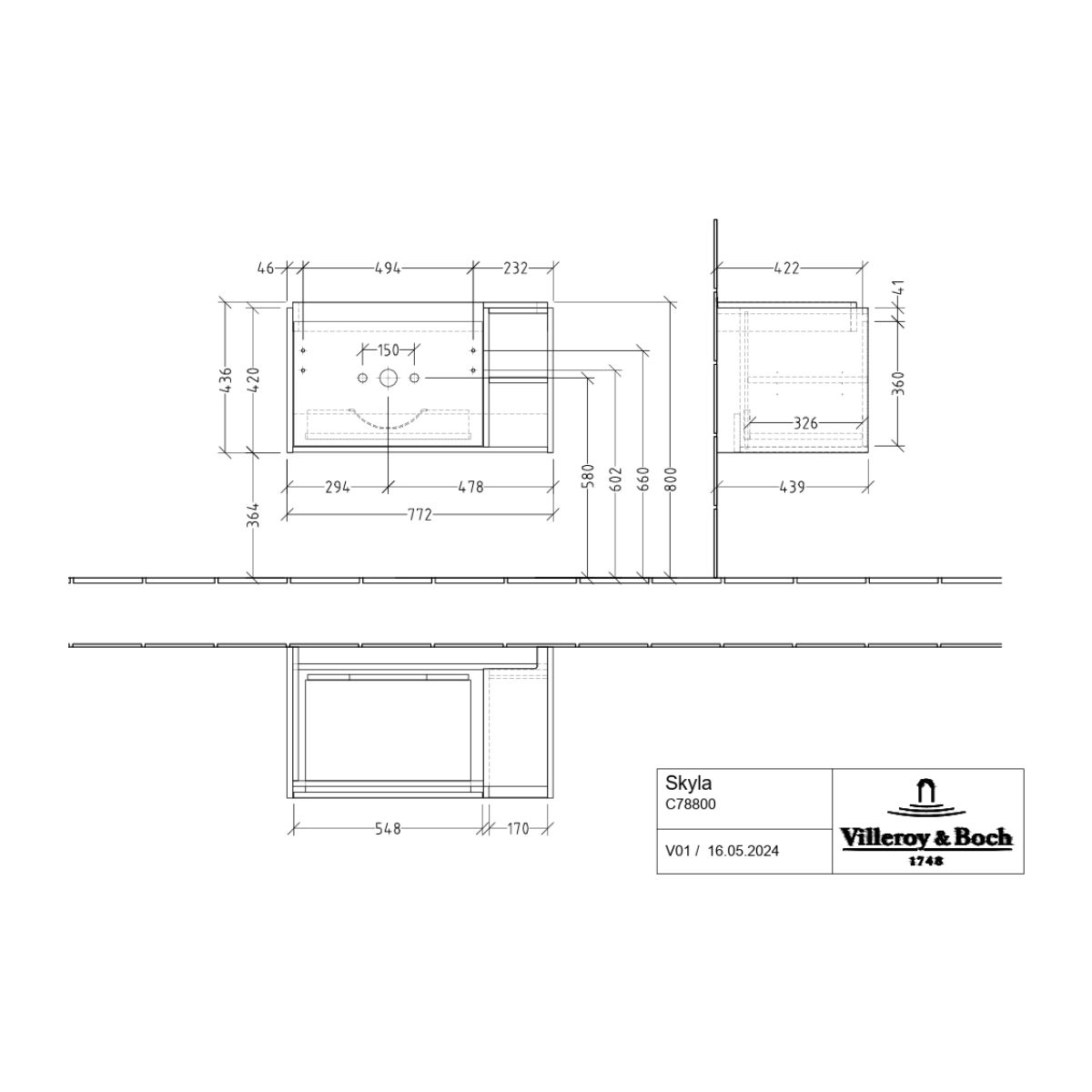 Villeroy & Boch Skyla Kabinett 77.2x43.9x43.6 cm Unterschrank hängend schwarz C78800VL