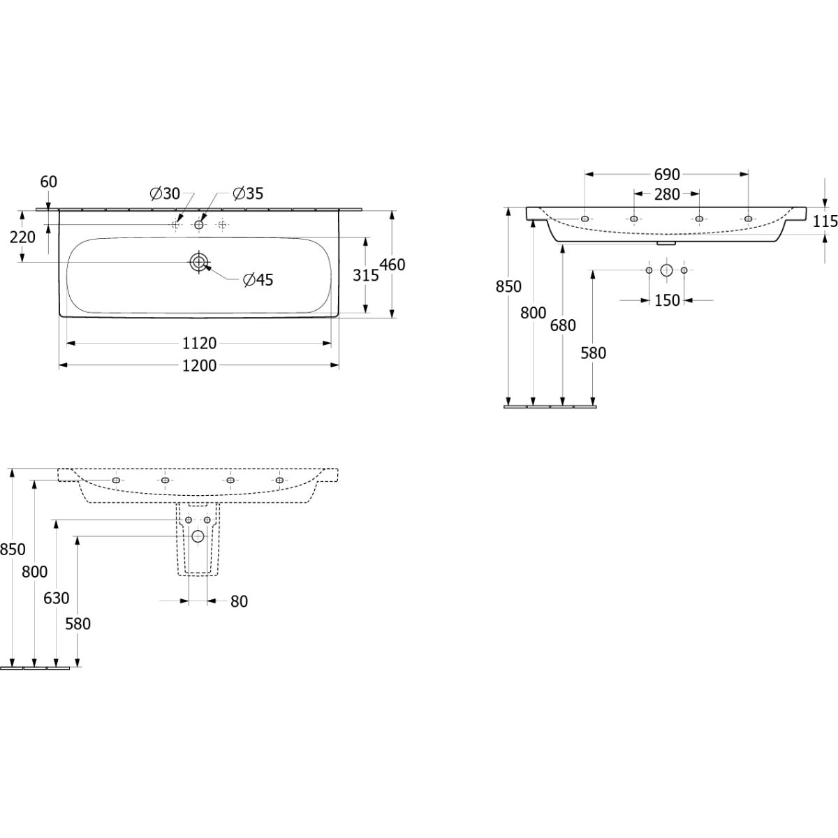 Villeroy & Boch Skyla Waschbecken 120x46 cm rechteckig Möbel weiß 5A51C1RW