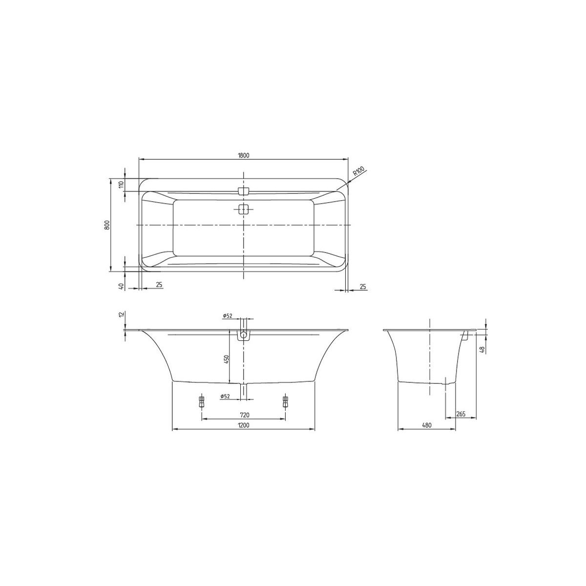 - Maße des Wannenbodens: 120 x 48 cm