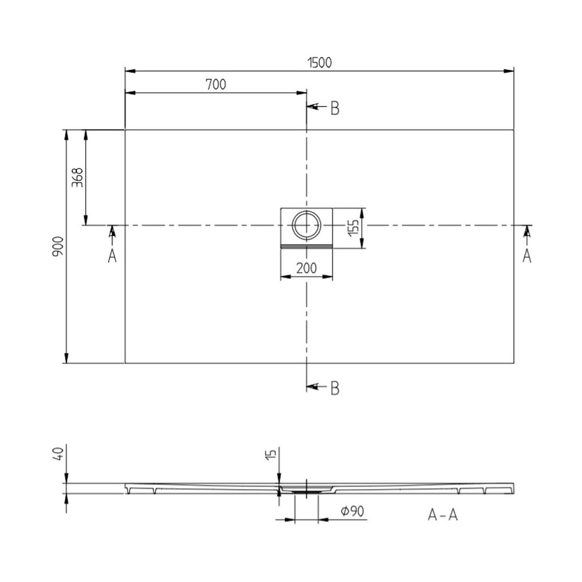 - Farbe des Abflusses: passend matt mit verchromter Leiste