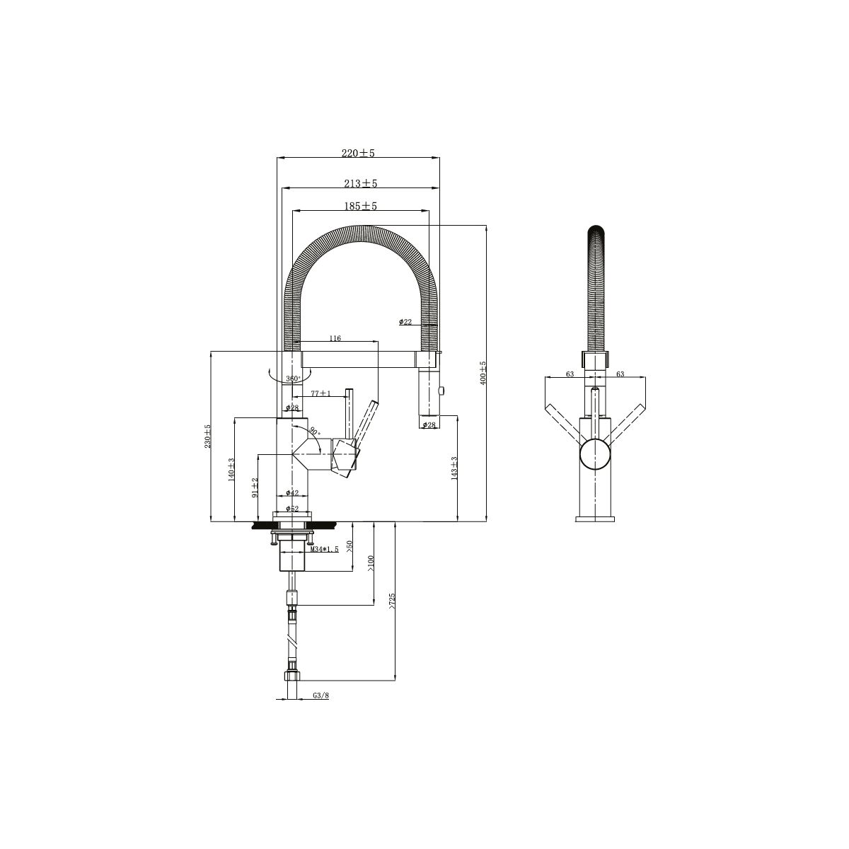 - 360° drehbarer Auslauf