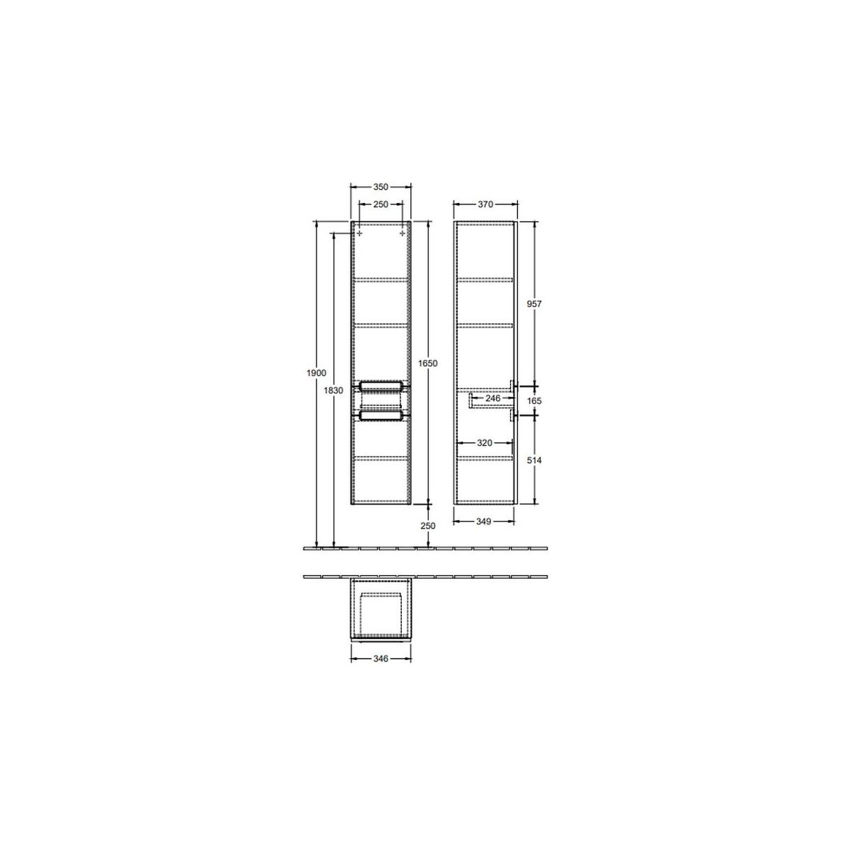 Villeroy & Boch Subway 2.0 Kabinett 35x37x165 cm Seitenschrank hängend weiß A70710DH