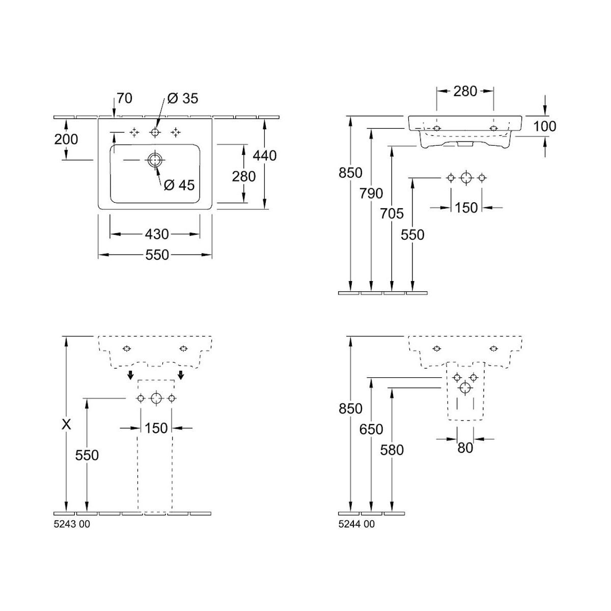 Villeroy & Boch Subway 2.0 Waschbecken 55x44 cm rechteckig Klassisch weiß 71135501