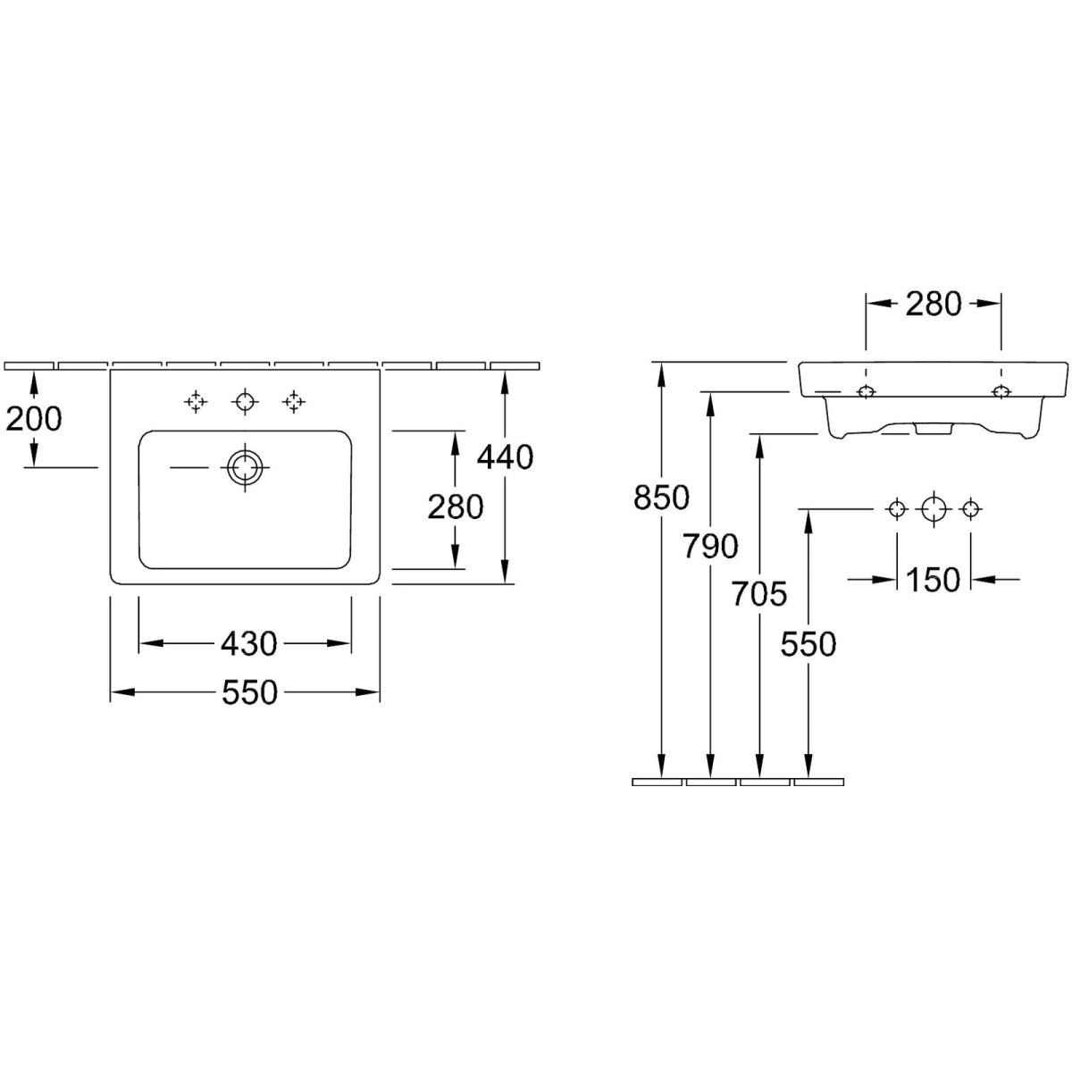 - vorbereitet für eine 3-Loch-Armatur mit ausgestanztem mittlerem Loch