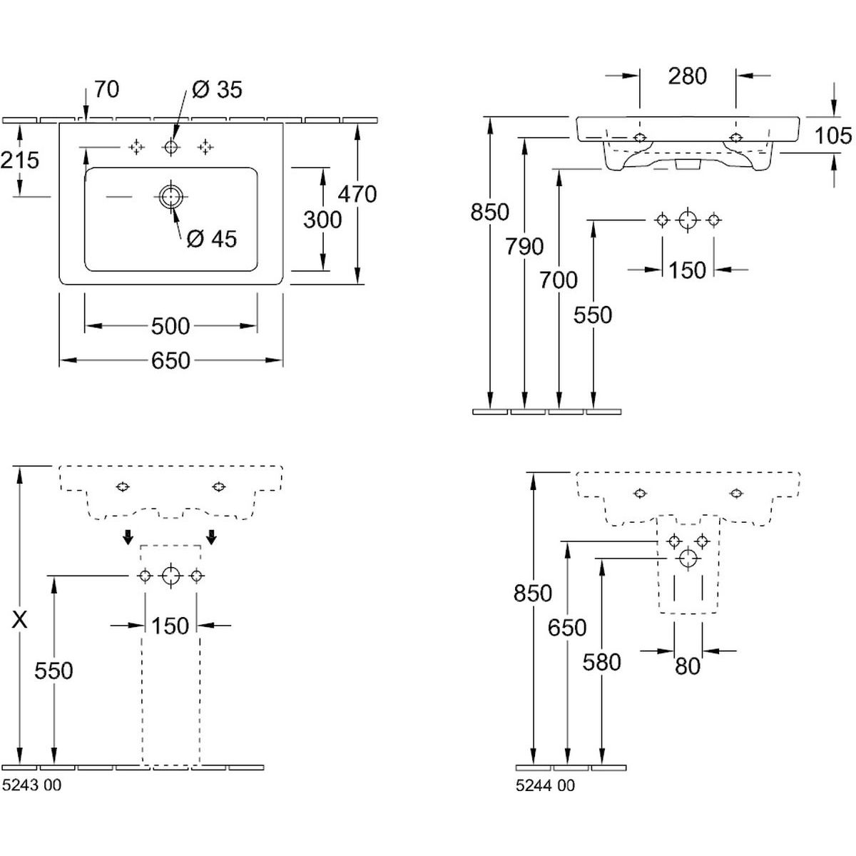 Villeroy & Boch Subway 2.0 Waschbecken 65x47 cm rechteckig Klassisch weiß 711365R1