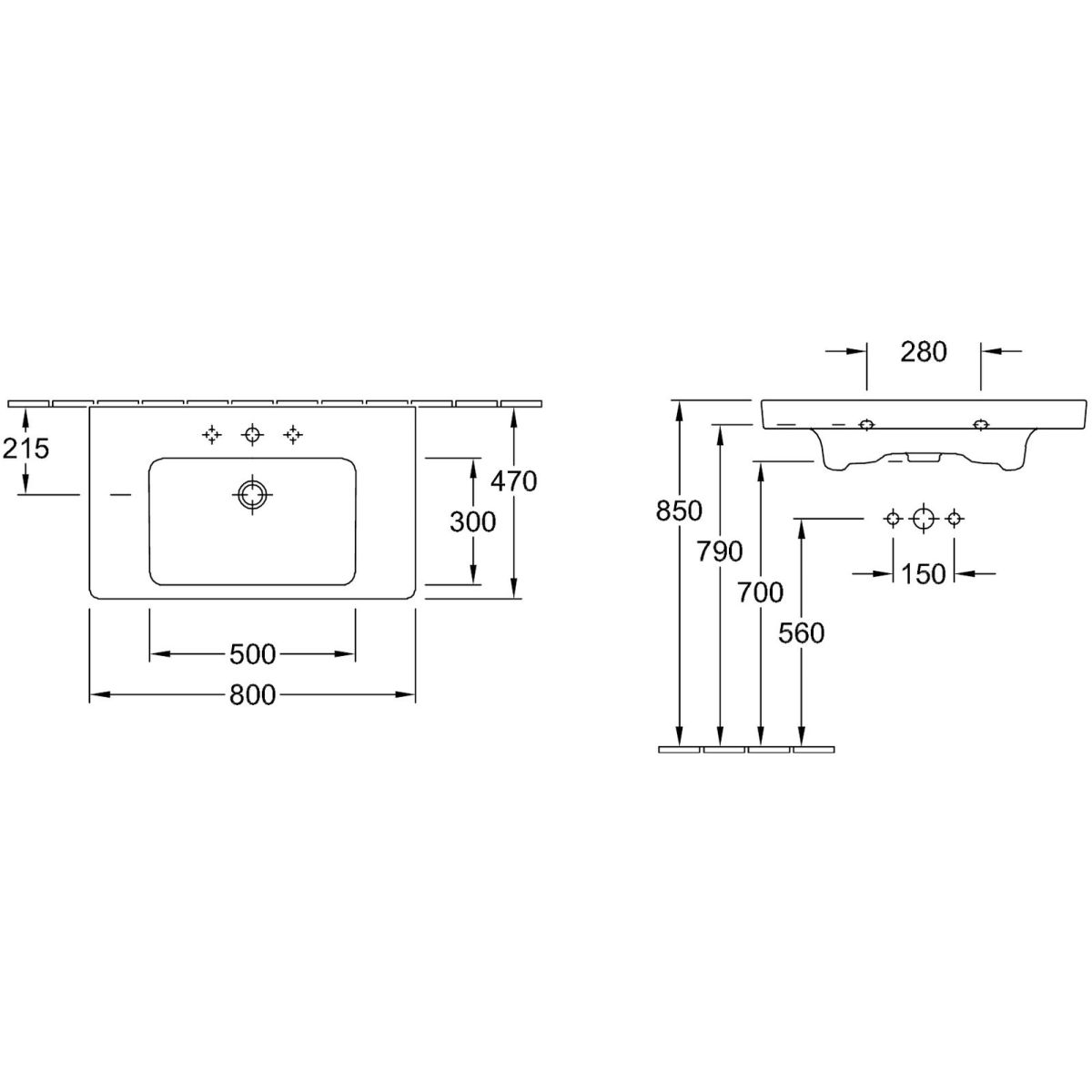 Villeroy & Boch Subway 2.0 Waschbecken 80x47 cm rechteckig Klassisch-Möbel-mit Blatt weiß 71758G01