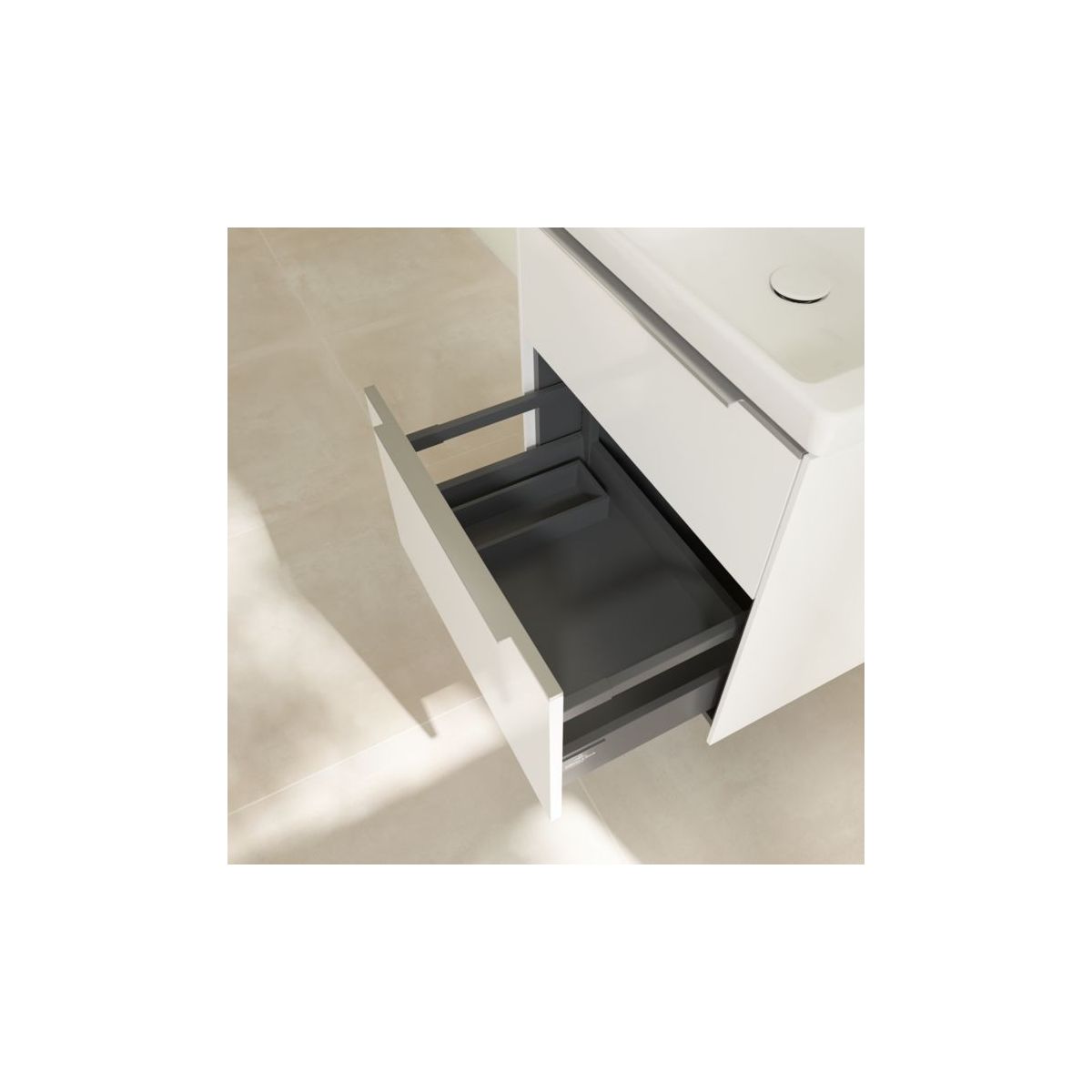 - Der Schrank verfügt über 2 ausziehbare Schubladen mit SoftClosing-Funktion