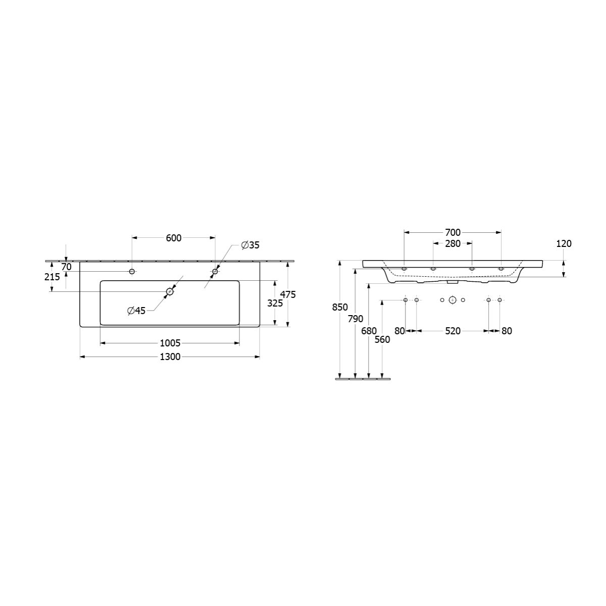 Villeroy & Boch Subway 3.0 Waschbecken 130x47.5 cm rechteckig Möbel weiß 4A70D1R1