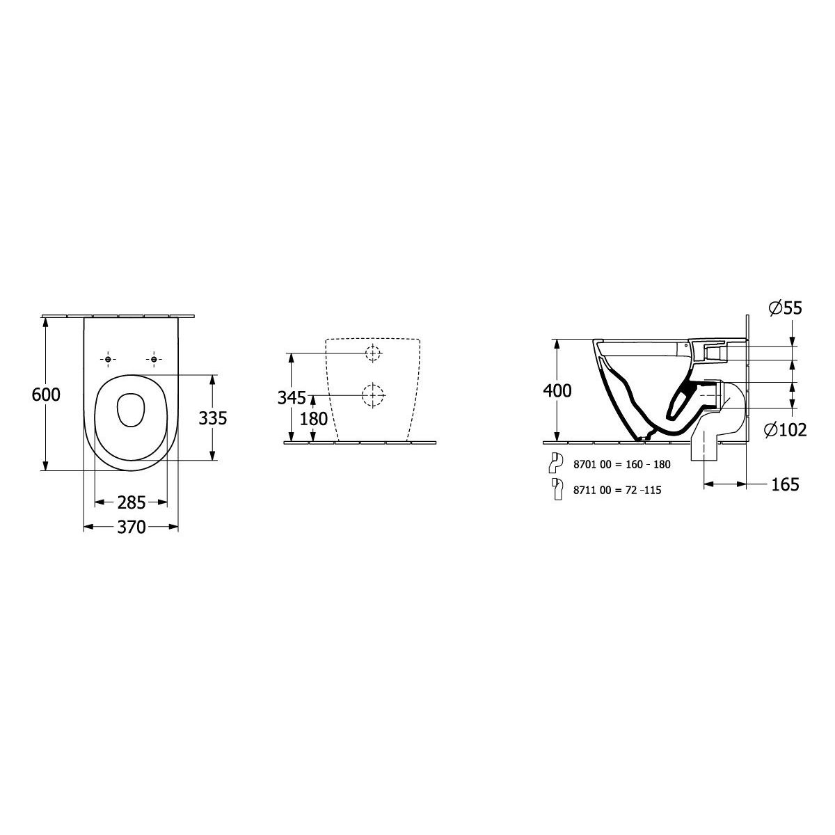 - nicht für die Montage mit Druckbetätigten Spülkästen geeignet