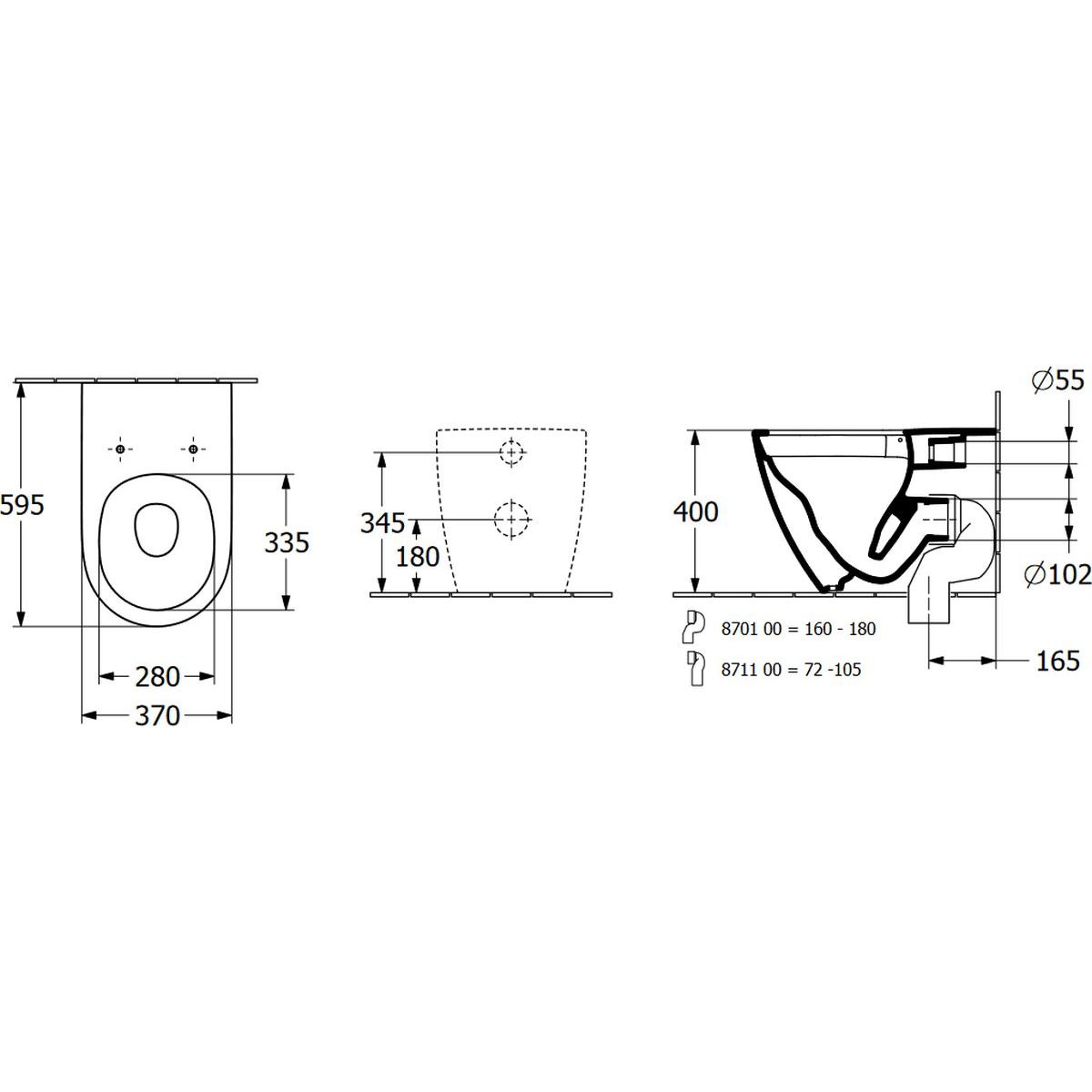 - Nicht für die Montage mit Druckspülkästen geeignet