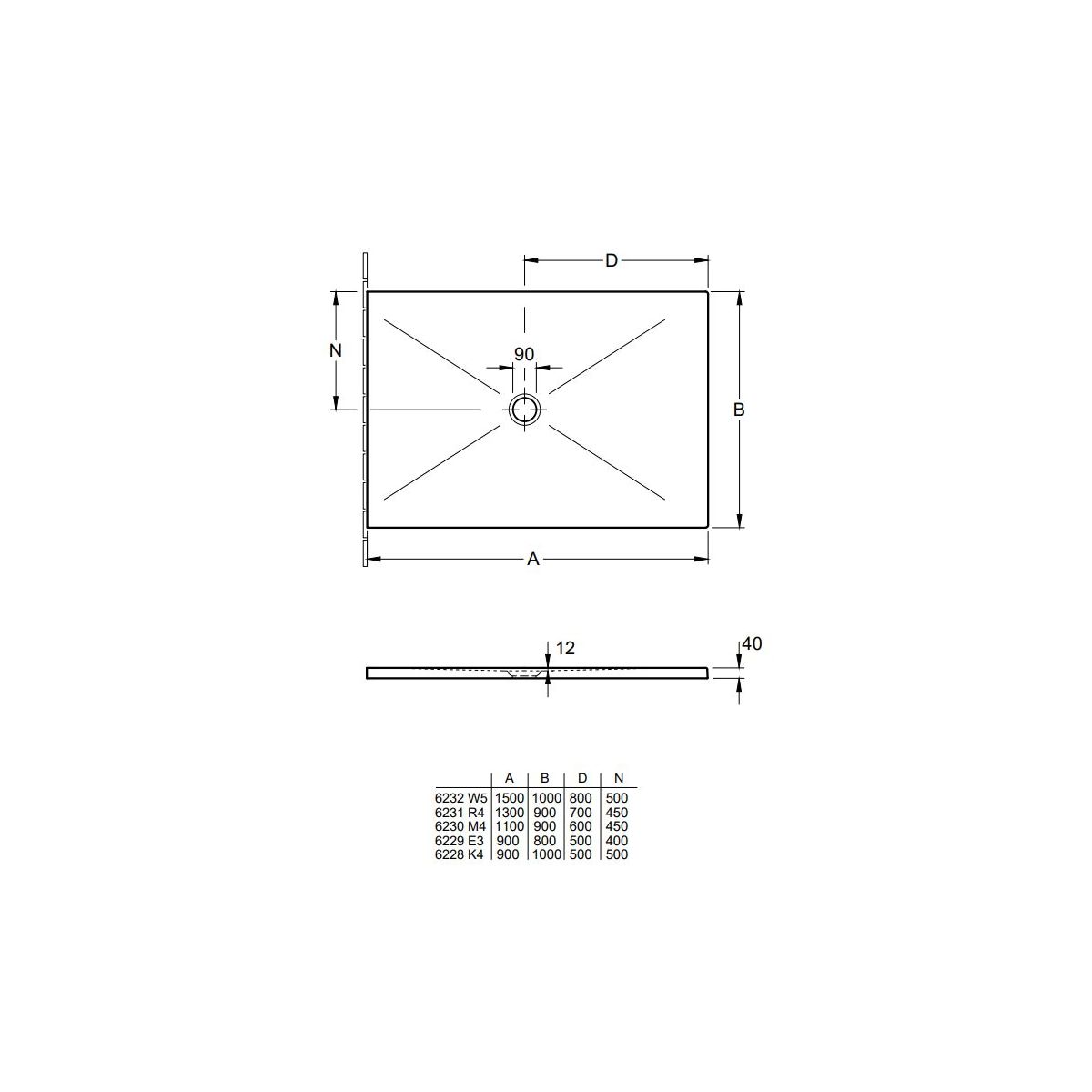 - Durchmesser des Abflusses 90 mm