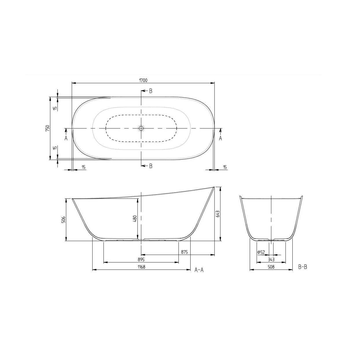 Villeroy & Boch Theano Freistehende Badewanne 170x75 cm oval UBQ170ANH7F200V-01