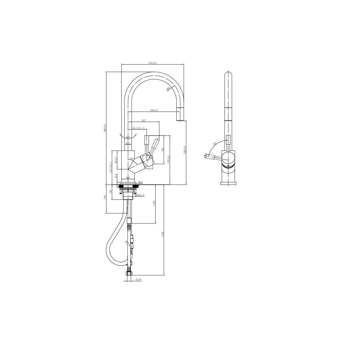 - flexible Anschlussschläuche, Länge: 600 mm