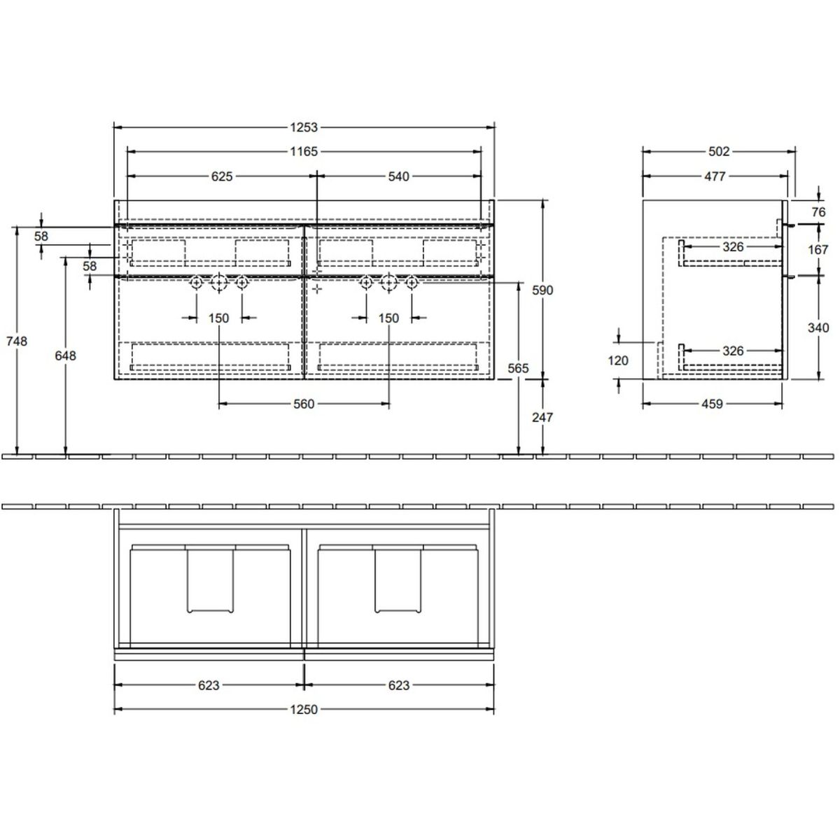 Villeroy & Boch Venticello Kabinett 125.3x50.2x59 cm Unterschrank hängend grau A93001FP