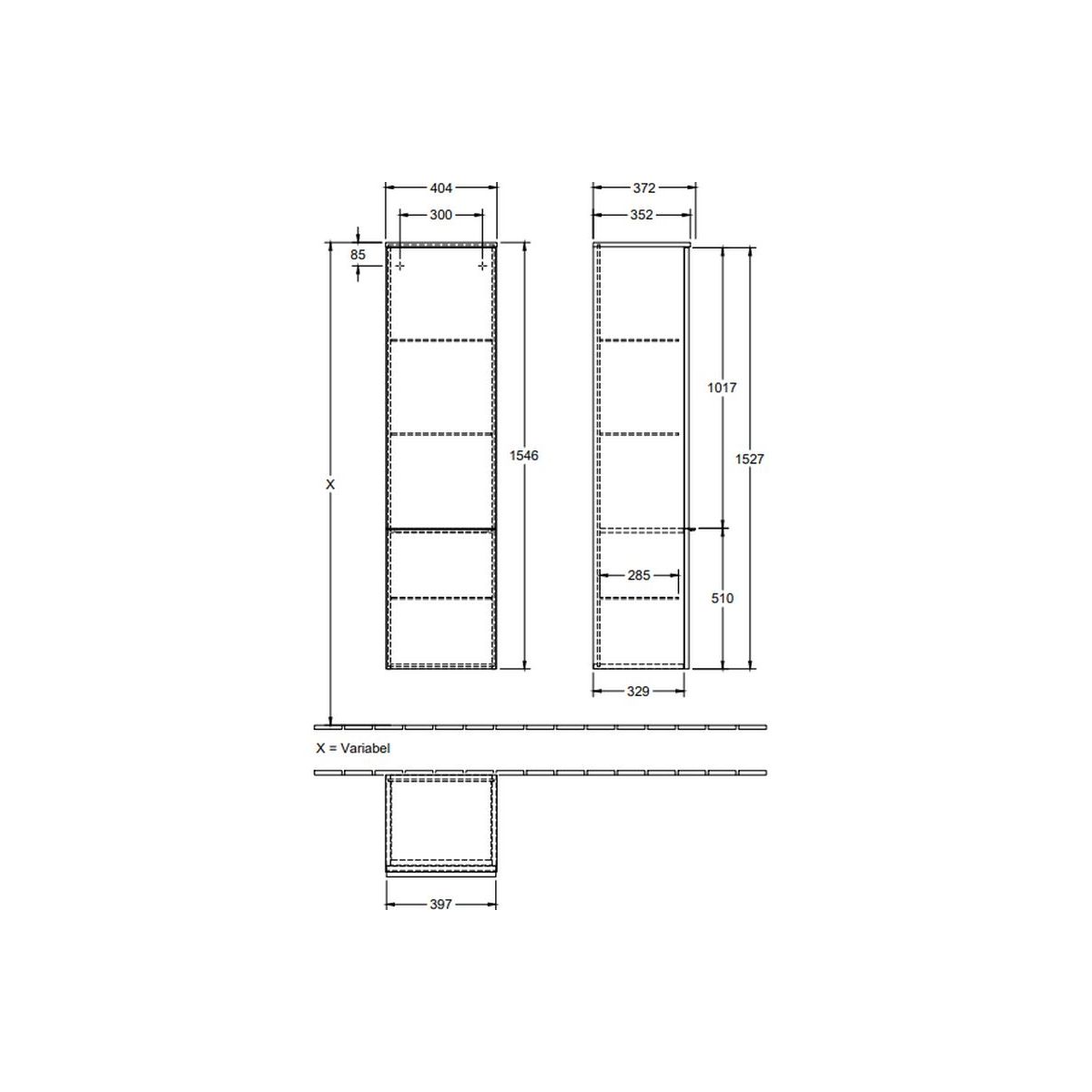 Villeroy & Boch Venticello Kabinett 40.4x37.2x154.6 cm Seitenschrank hängend weiß A95111DH