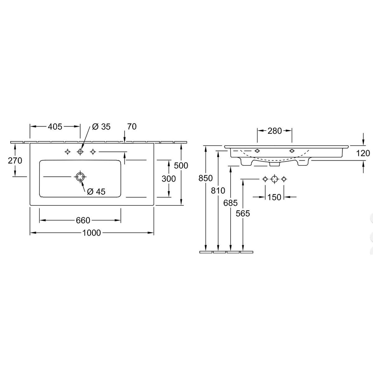 Villeroy & Boch Venticello Waschbecken 100x50 cm rechteckig Klassisch-Möbel-mit Blatt weiß 134L1R1
