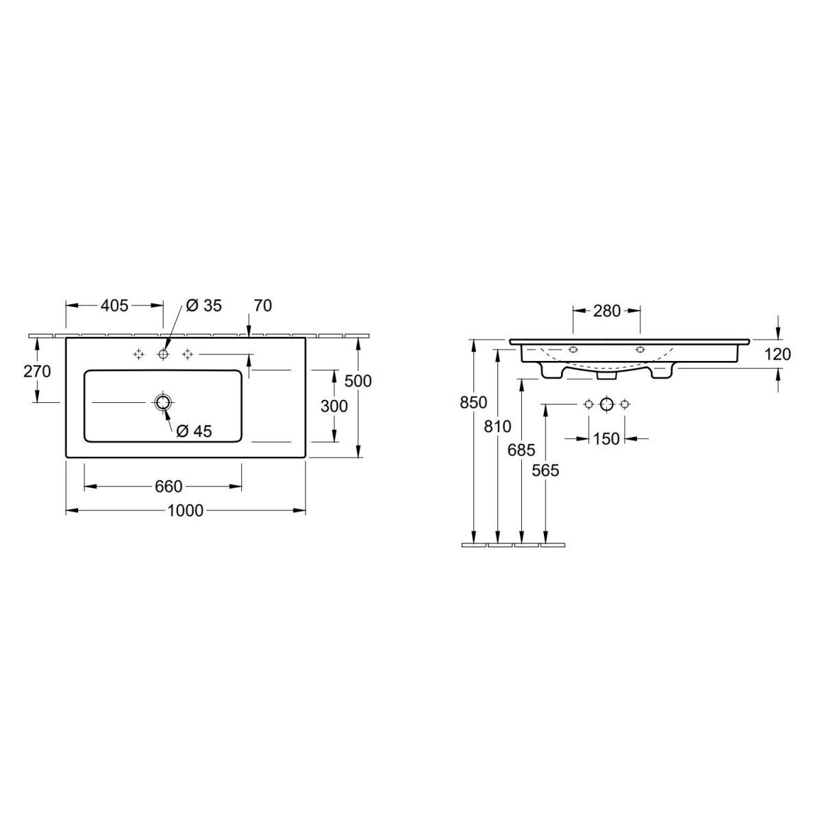 Villeroy & Boch Venticello Waschbecken 100x50 cm rechteckig Klassisch-Möbel-mit Blatt weiß 4134L1RW