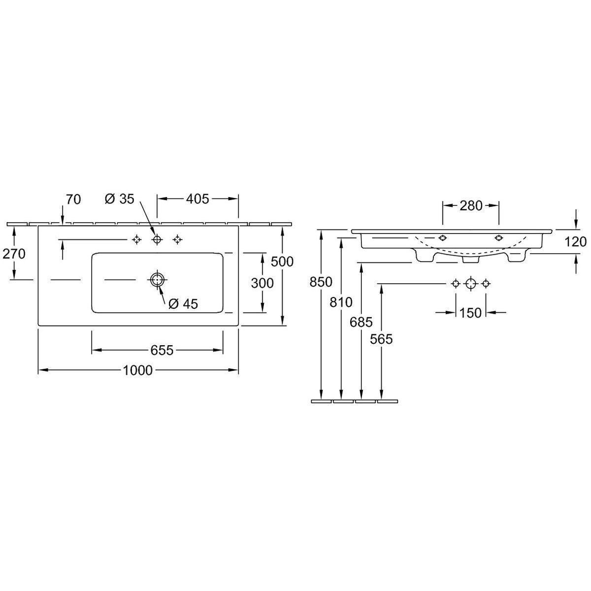 Villeroy & Boch Venticello Waschbecken 100x50 cm rechteckig Klassisch-Möbel-mit Blatt weiß 4134R101