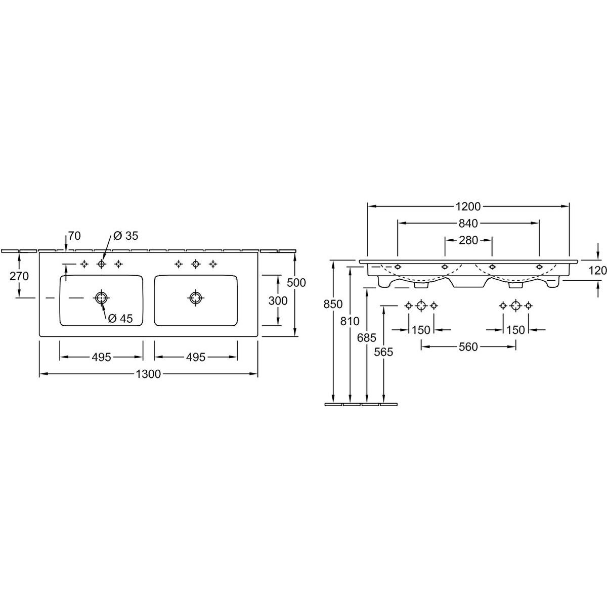 Villeroy & Boch Venticello Waschbecken 130x50 cm rechteckig Klassisch-Möbel-Doppelt weiß 4111DL01