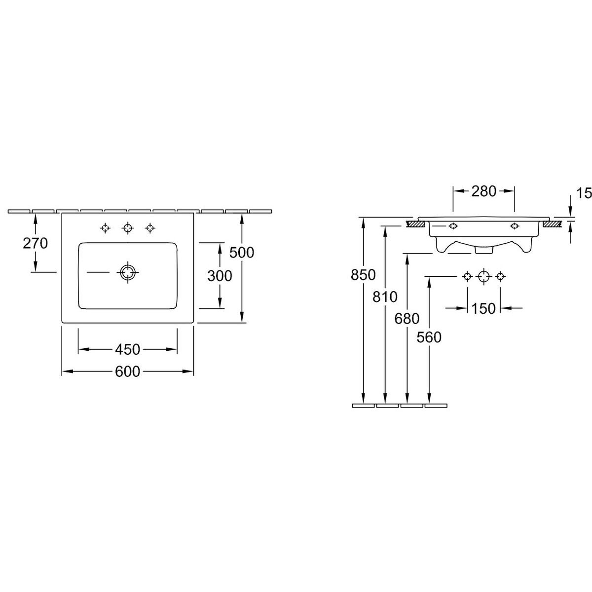 Villeroy & Boch Venticello Waschbecken 60x50 cm rechteckig Klassisch weiß 4124G601