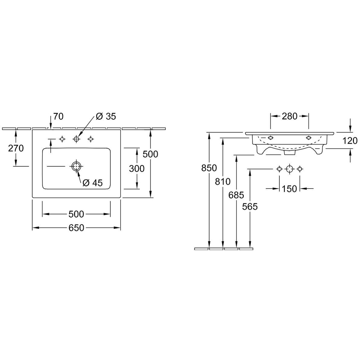 Villeroy & Boch Venticello Waschbecken 65x50 cm rechteckig Klassisch-Möbel weiß 412465R1