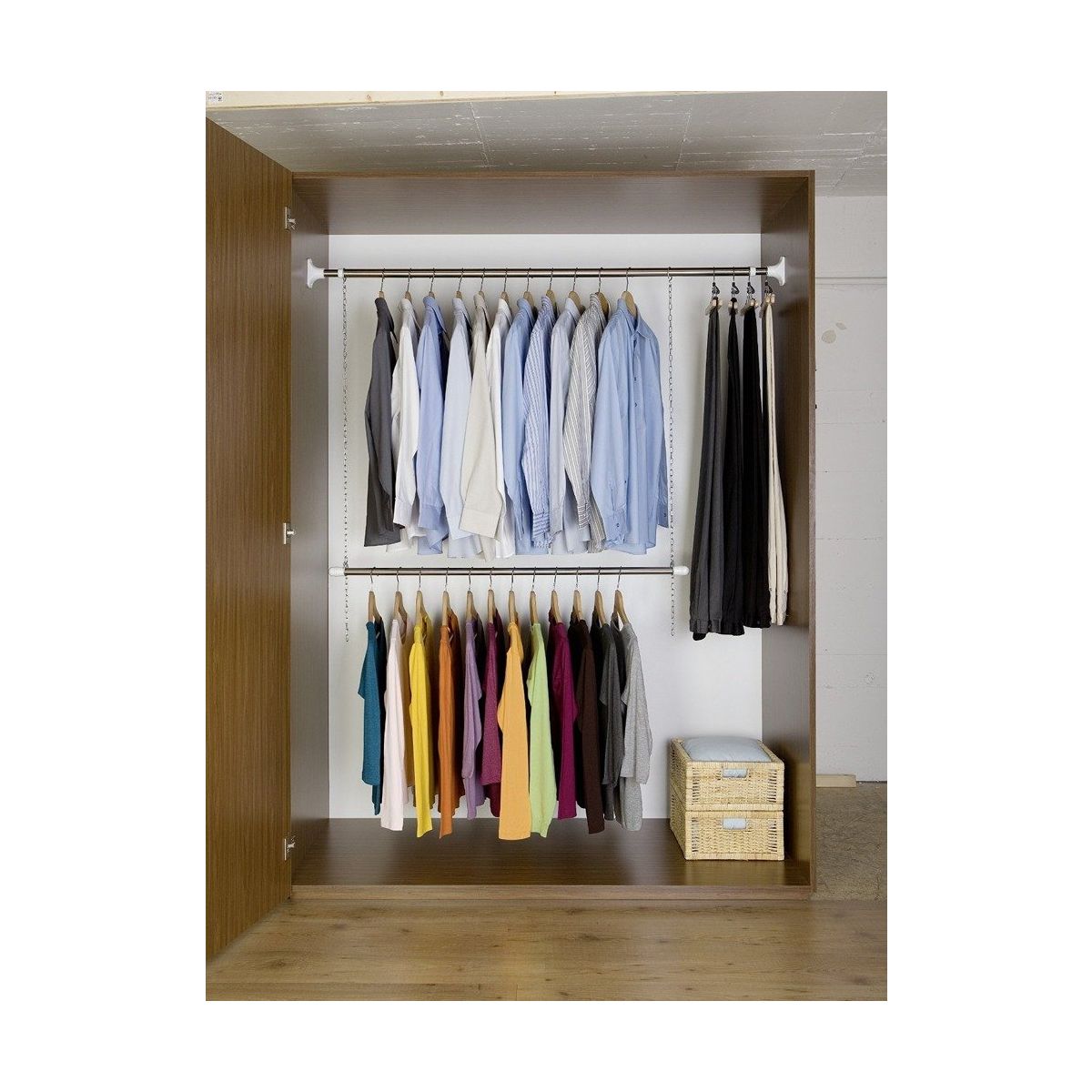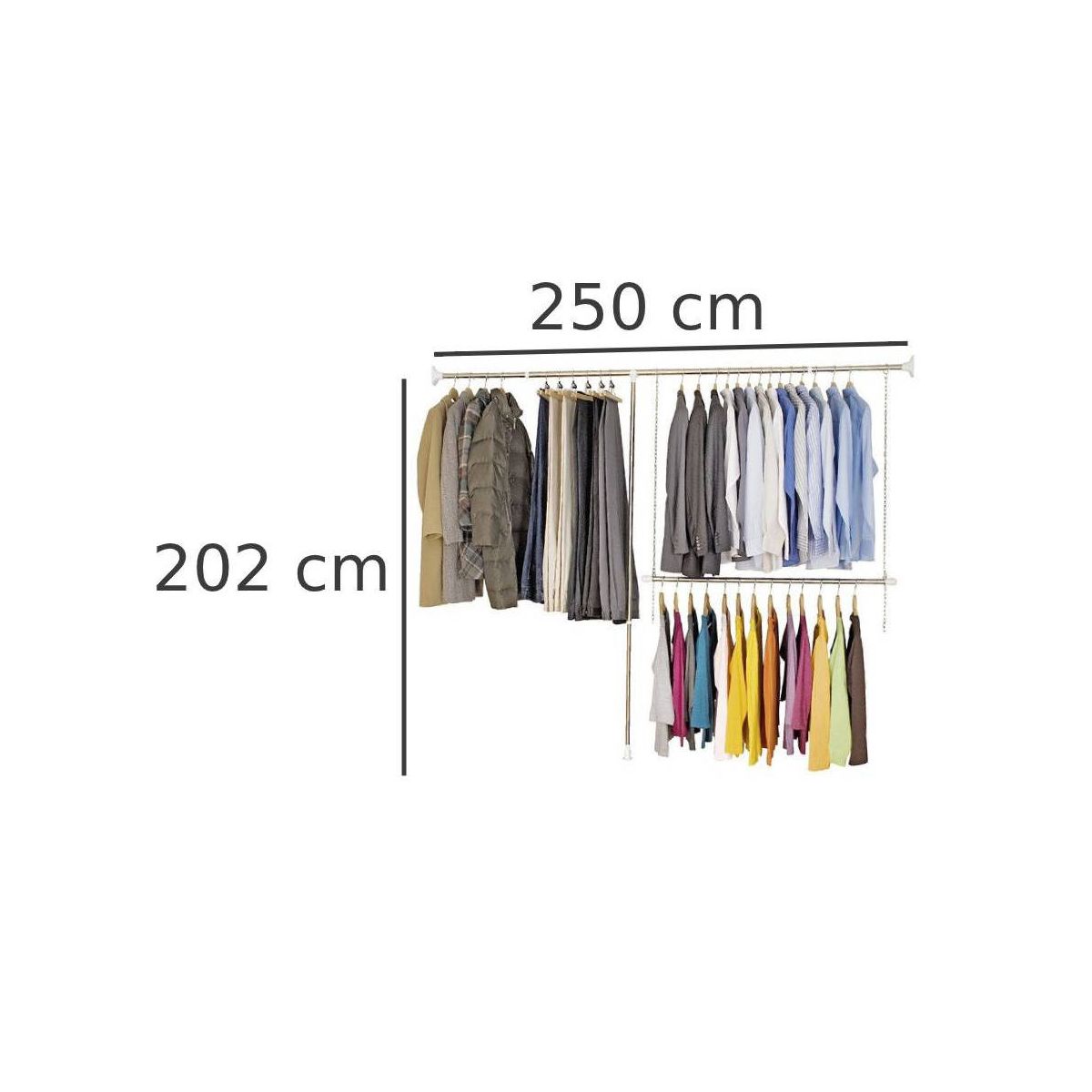 - 1 hängender Kleiderbügel mit höhenverstellbaren Ketten