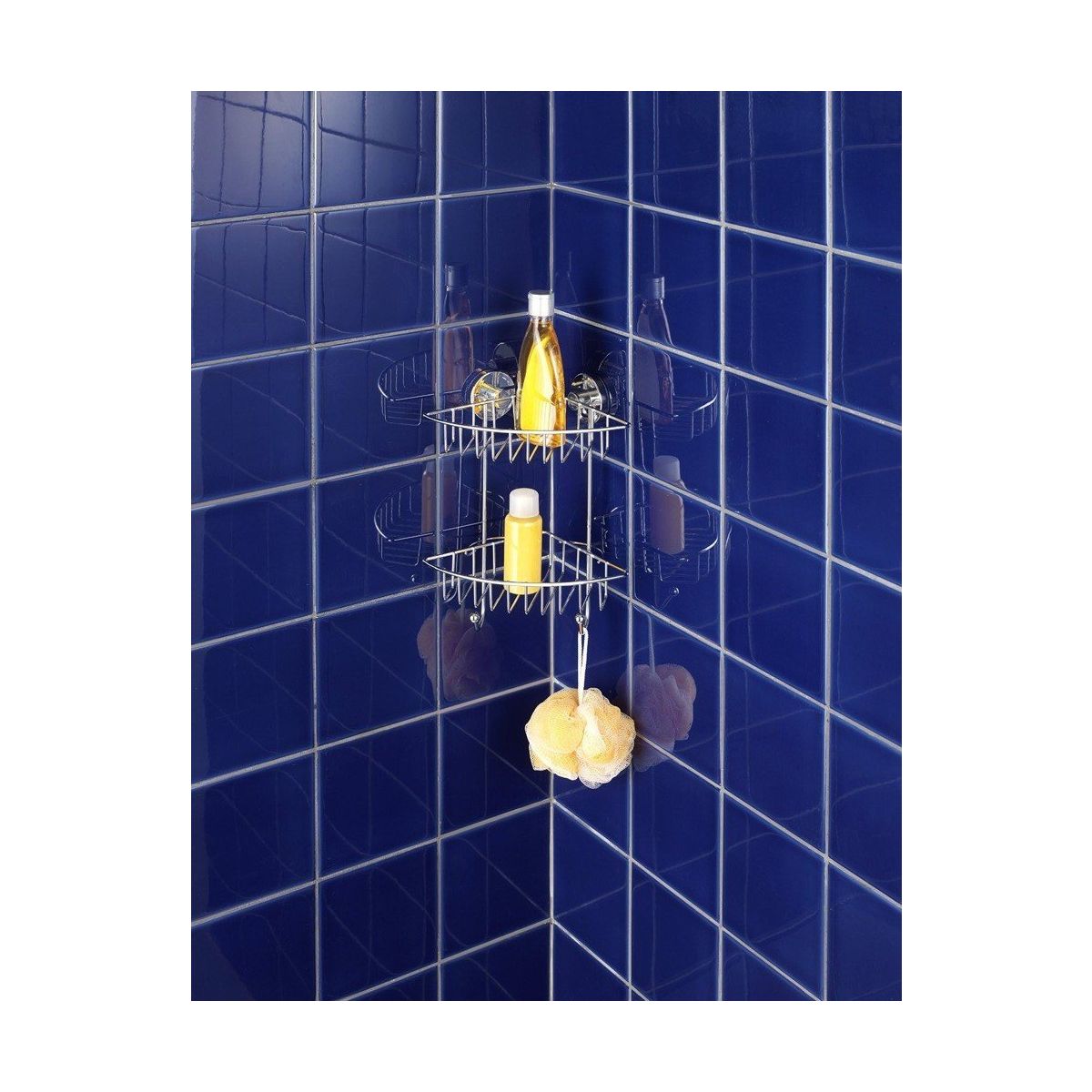 Das in der Dusche montierte Eckregal sorgt dafür, dass Sie alle notwendigen Pflegeprodukte immer griffbereit haben.