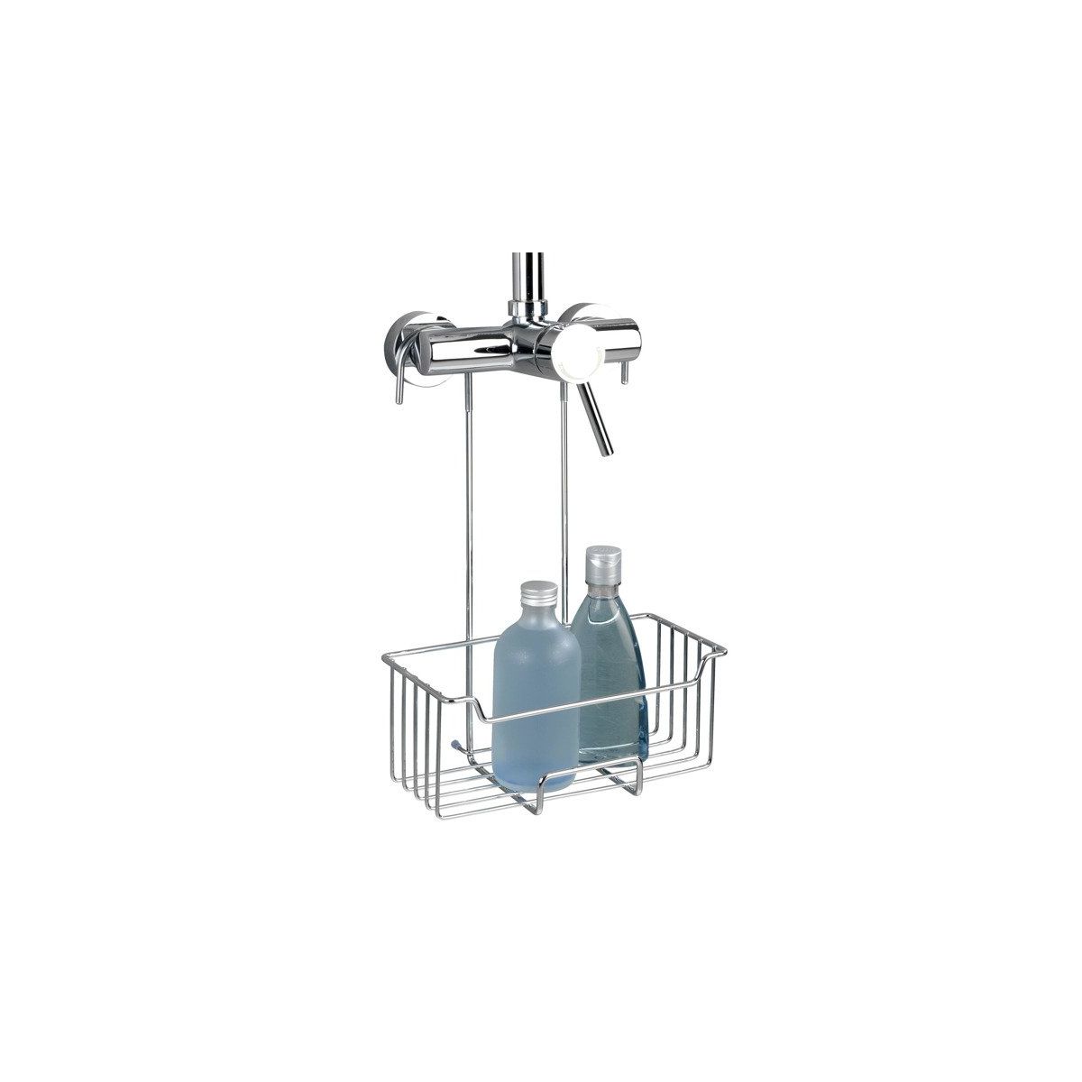 Badezimmerablage, die an der Duscharmatur befestigt wird. Der Korb mit einer Ablagefläche bietet zusätzlichen Platz im Badezimmer für verschiedene kleine Accessoires, z. B. Shampooflaschen oder Duschgels. Dank der Drahtkonstruktion sammelt sich kein unnötiges Wasser am Boden des Korbs.