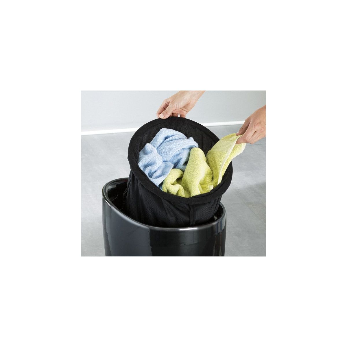 Der Wäschekorb kann gleichzeitig als Badezimmersitz dienen. Der Inneneinsatz ermöglicht ein bequemes Herausnehmen des Inhalts.
