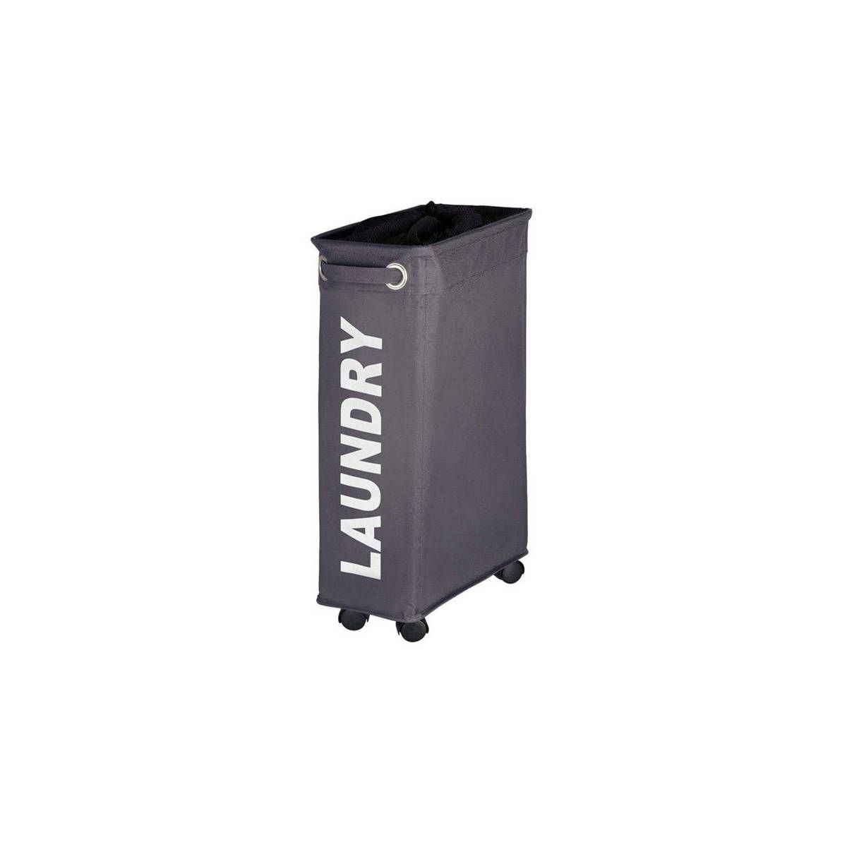 Wäschekorb in Anthrazit. Hergestellt aus einem Stoff, der für Luftzirkulation sorgt, sodass die Kleidung keine unangenehmen Gerüche annimmt.