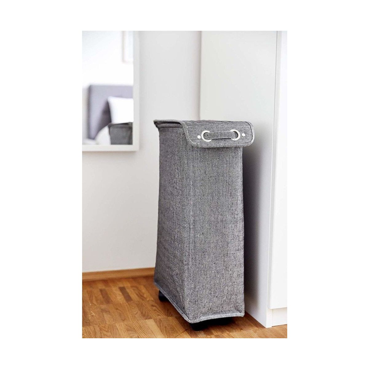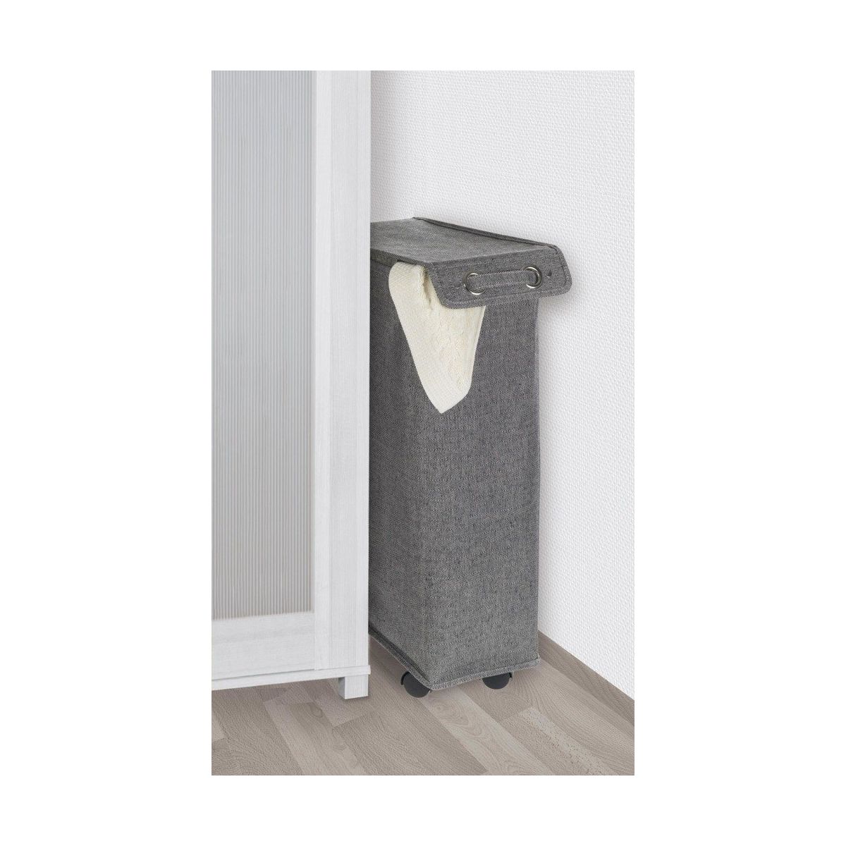 Wäschekorb in Grau. Hergestellt aus hochwertigen Materialien – Polyester und Baumwolle.
