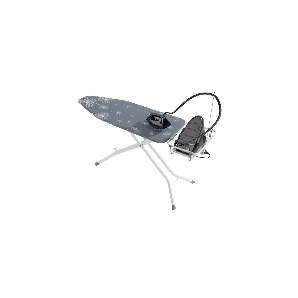Das Brett verfügt über eine integrierte Antenne, an der das Kabel des Bügeleisens befestigt werden kann. Die abgerundete Form erleichtert das Bügeln, ohne Falten zu verursachen. Die innovative Beschichtung des Bezugs reflektiert die Wärme des heißen Bügeleisens perfekt und verkürzt die Bügelzeit.